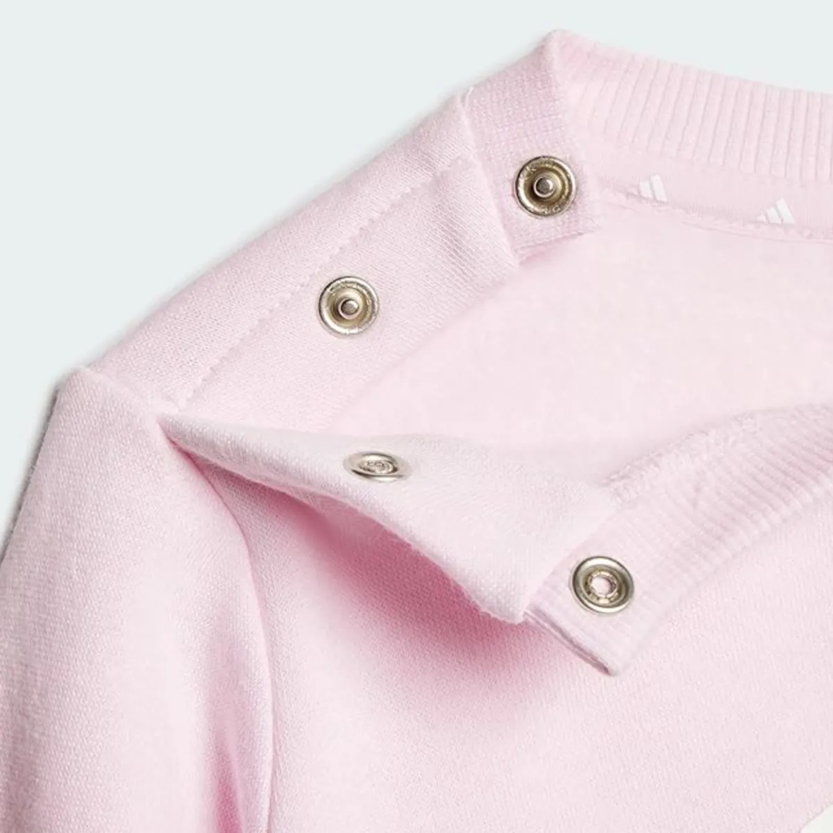 Completo da bimba composto da felpa girocollo e pantaloni. Questa tuta Adidas infant è morbida e confortevole, perfetta per ogni tipo di avventura. Il girovita elasticizzato e gli orli a coste assicurano versatilità e una vestibilità stabile mentre provano i loro primi passi. Il 3 Bar Logo oversize completa il look con un tocco sportivo.