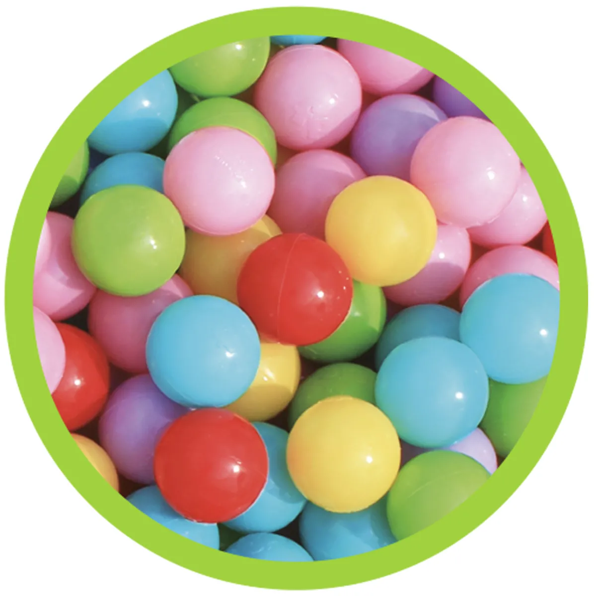 – Con 50 palline colorate per far divertire il tuo bambino, sviluppando la sua motricità e la coordinazione occhio-mano.