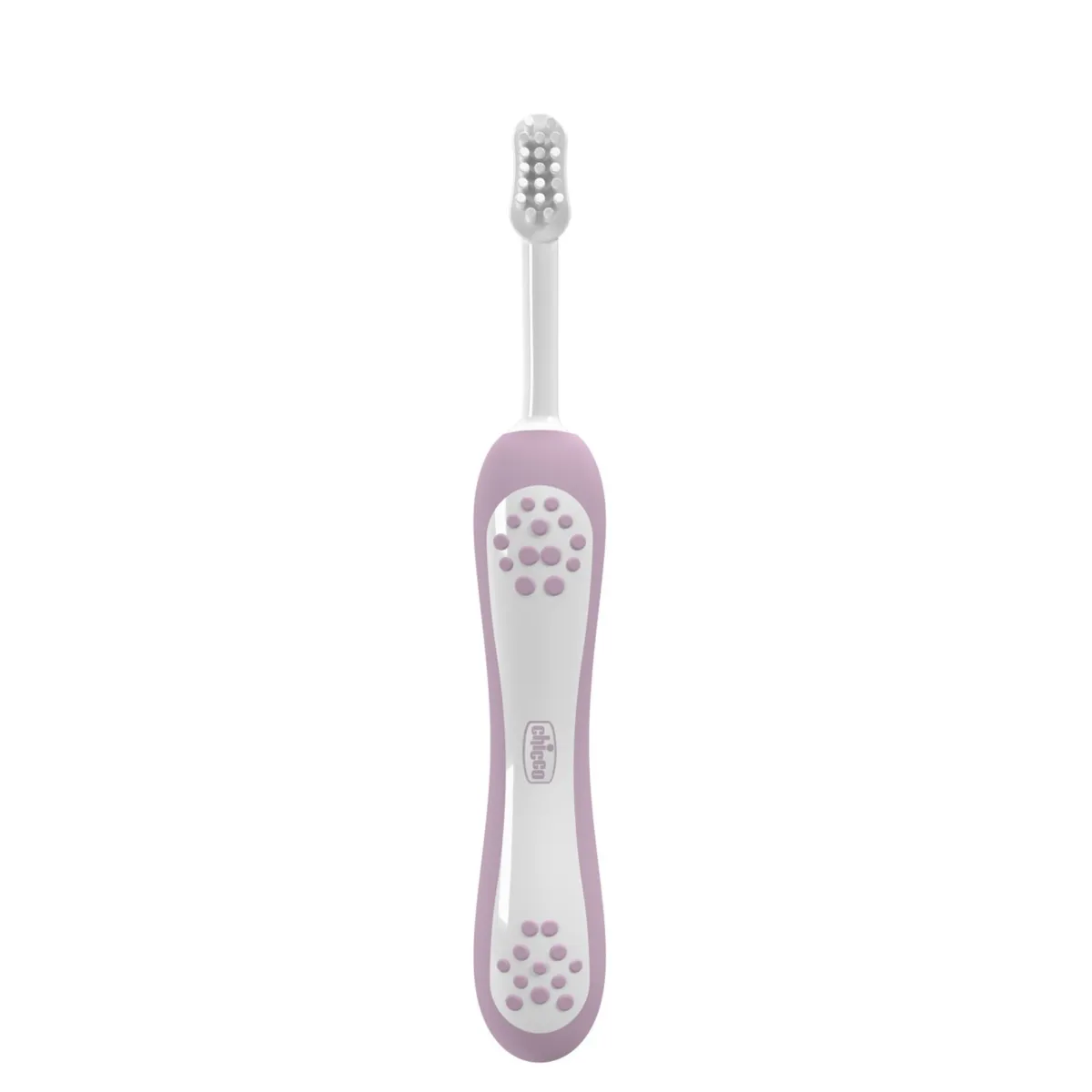 Lo spazzolino da denti 6m+ Lilla fa parte della Linea Oral Care di Chicco, studiata per le gengive sensibili dei più piccoli e per proteggere lo smalto dei loro denti.