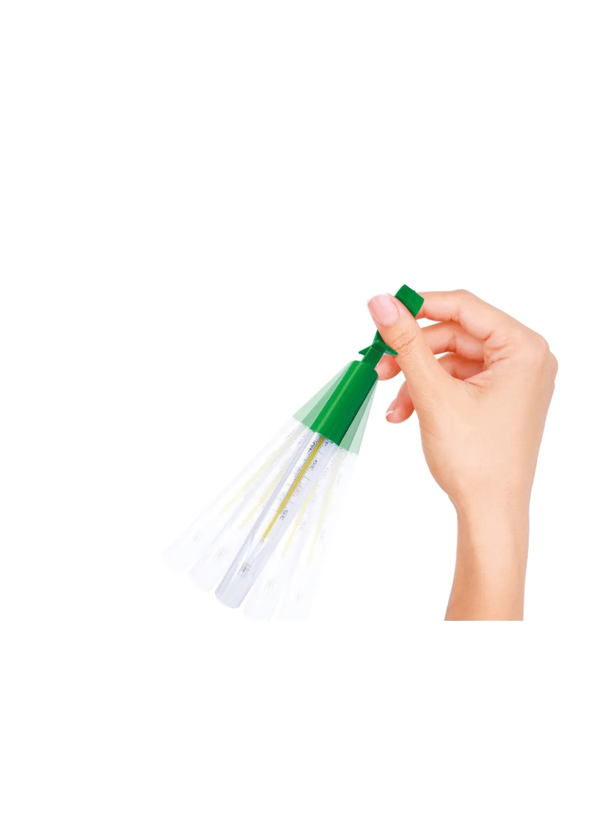 Medel EcoTemp è un termometro clinico in vetro, privo di mercurio, adatto alla misurazione della temperatura in modalità orale o ascellare. Composto da una lega con gallio, atossica e innocua per l’uomo e per l’ambiente, garantisce una facile e accurata misurazione della temperatura. Con custodia rigida dotata di abbattitore della temperatura da usare alla fine di ogni misurazione.