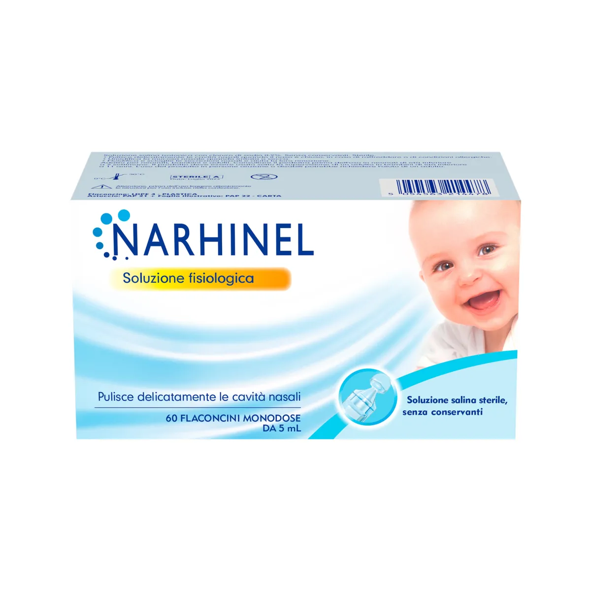 Narhinel Soluzione Fisiologica per Aspiratore Nasale. Soluzione salina isotonica sterile con cloruro di sodio 0,9% raccomandata per: