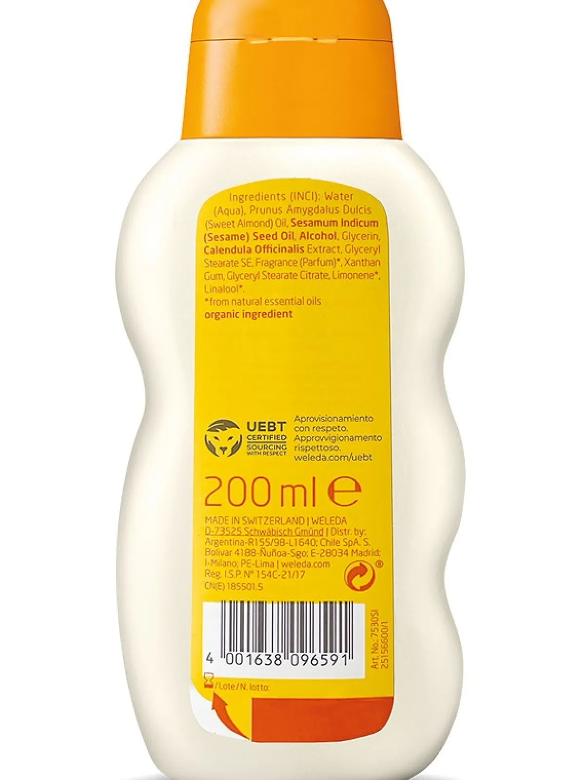 Baby Bagno Cremoso Calendula di Weleda è ideale per i primi bagnetti del bebè. Deterge dolcemente la pelle delicata del piccolo e ne sostiene le naturali funzioni, grazie alla sua formula completamente naturale a base di estratti di fiori di calendula e agli oli di mandorle dolci e sesamo, da coltivazioni bio. Certificato NATRUE.
