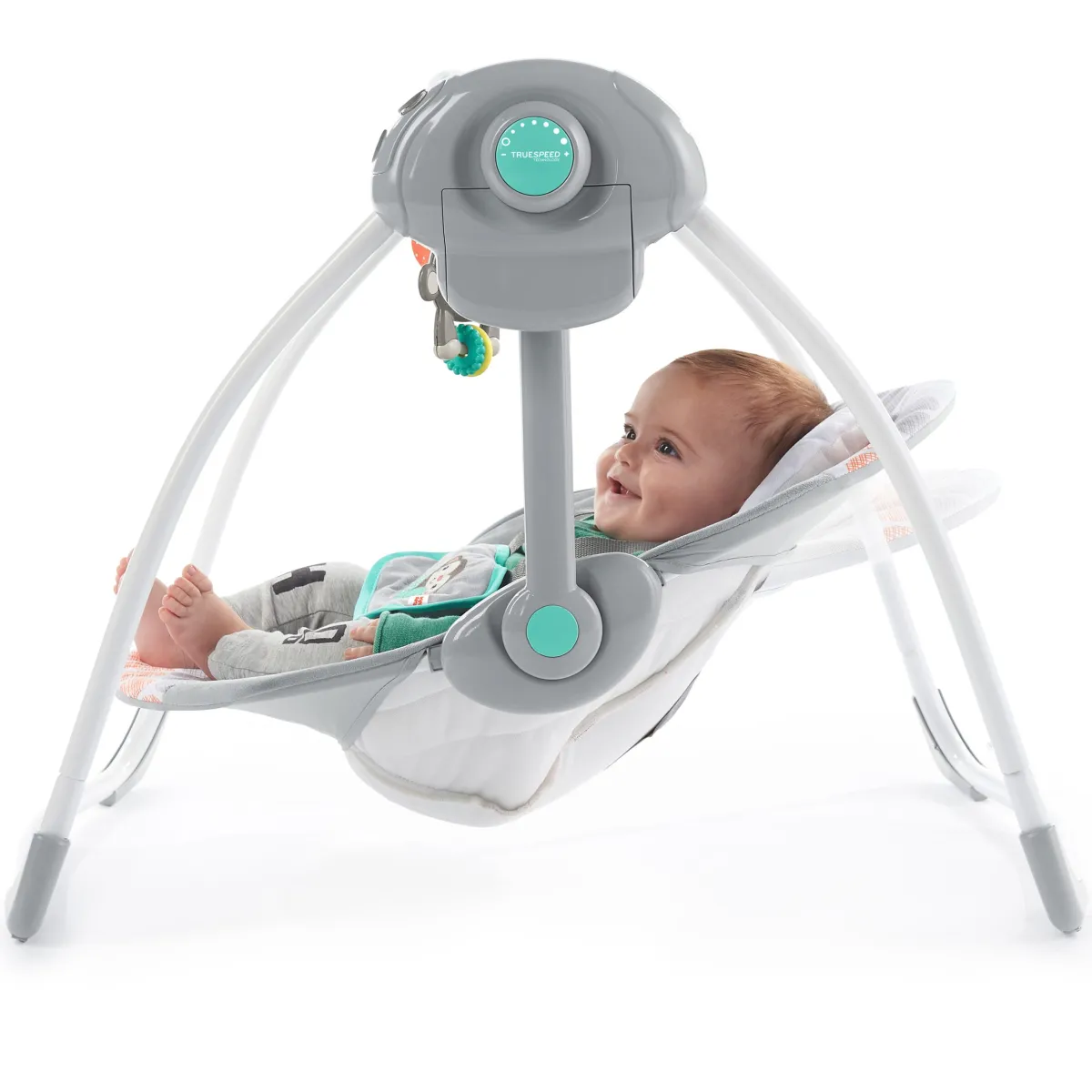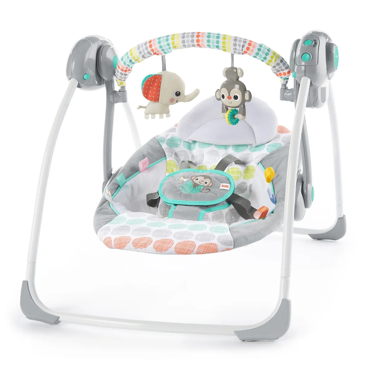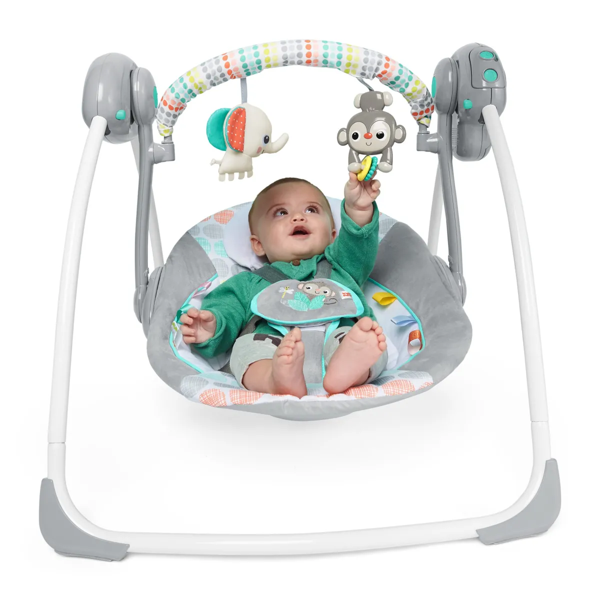 Dondola e oscilla come una piccola scimmietta nella comoda e divertente altalena Whimsical Wild di Bright Starts. Il tuo piccolino amerà questa altalena QUASI quanto le tue braccia. Grazie al telaio reclinabile in 2 posizioni, non c’è dubbio che il bimbo si sentirà a proprio agio su questa altalena. Due giocattoli sorridenti sono appesi alla giostrina facile da rimuovere per tenere il bambino in buona compagnia. Grazie alle sei allegre melodie, potrai tranquillizzare il tuo bebè con un po’ di musica mentre dondola. In più l’imbracatura regolabile a cinque punti terrà il bambino comodamente avvolto nella seduta accogliente. Compatta e accogliente, con un design leggero e pieghevole, chiudere questa mini altalena per bambini è un gioco da ragazzi. Ma non lasciarti ingannare dalle sue piccole dimensioni: questa altalena è piena di funzionalità. Grazie alla tecnologia che si adatta al peso, i neonati e i bimbi piccoli verranno dondolati alla velocità perfetta, a seconda dell’età. E grazie alla tecnologia WhisperQuiet, gli unici suoni che sentirai saranno i dolci sospiri e i balbettii del tuo bambino più felice che mai.