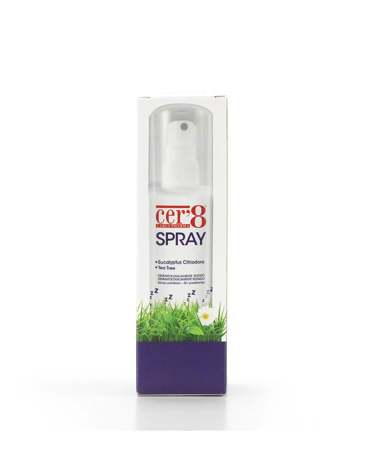 Cer’8 Spray non unge ed è facile e pratico da utilizzare. Nuova formula a base di oli essenziali al 100% naturali e puri di: Eucalyptus Citriodora e Tea Tree noti per essere sgradite alle zanzare. Dermatologicamente testato e senza parabeni, indicato per tutta la famiglia. Formato da 100 ml.