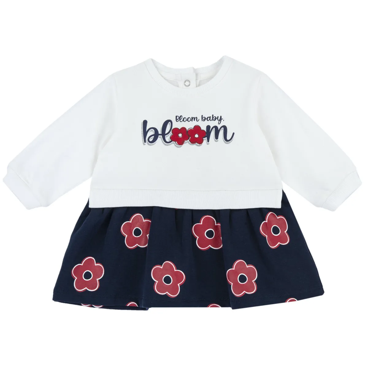 VESTITO NEONATA: vestito a maniche lunghe in caldo e morbido tessuto felpato. Questo capo Chicco è lavabile in lavatrice, per un’igiene elevata