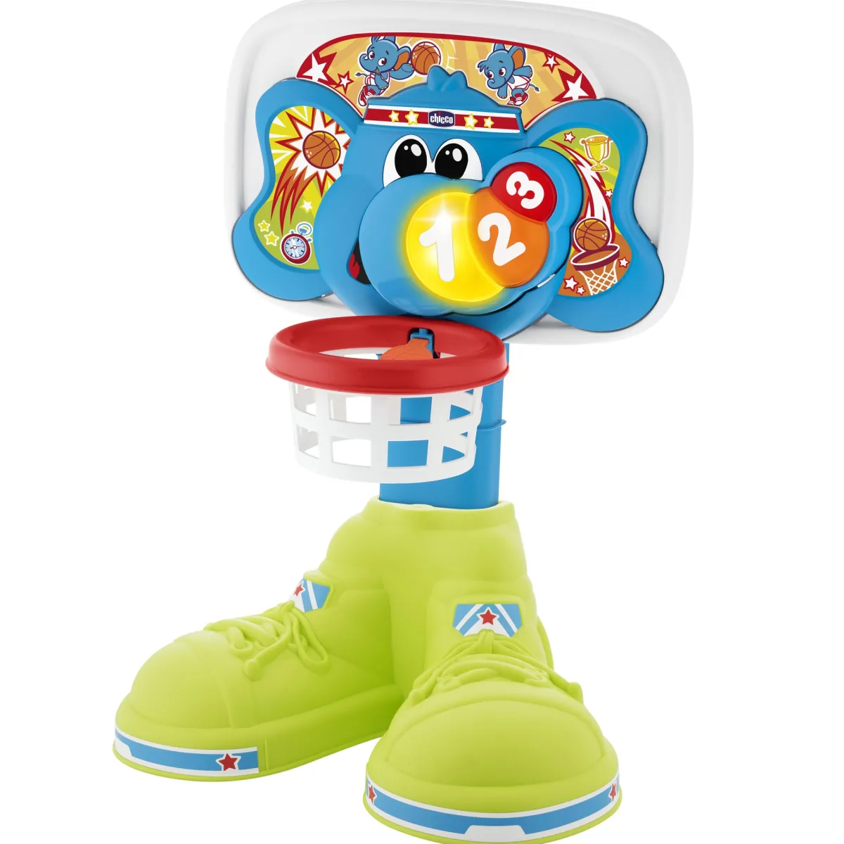 Il canestro Basket League di Chicco è un’esperienza interattiva per il tuo bambino, promuovendo la coordinazione e il divertimento. Ogni cestino riconosce il passaggio della palla e celebra ogni canestro con luci accattivanti e suoni allegri. Con due modalità di gioco – “tiri liberi” per vincere facendo 3 canestri consecutivi e “countdown” per fare canestro prima che il tempo scada (con 5 livelli di difficoltà) – il tuo bambino sarà impegnato e stimolato. L’altezza regolabile fino a 58 cm permette al canestro di crescere con il tuo piccolo campione. La palla inclusa è morbida e sicura per le mani più piccole. Basket League di Chicco offre un’intrigante introduzione al mondo dello sport per i più giovani, incoraggiando lo sviluppo motorio e la gioia del gioco.