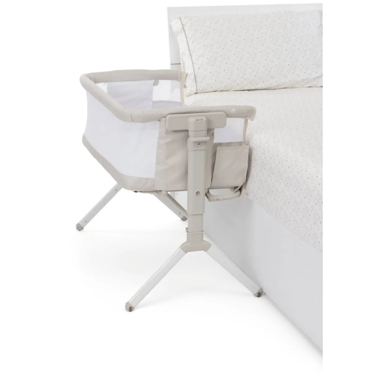 Un innovativo sistema di installazione a scorrimento laterale consente di montare la culla sulla maggior parte dei letti, anche quelli con cassetti.
