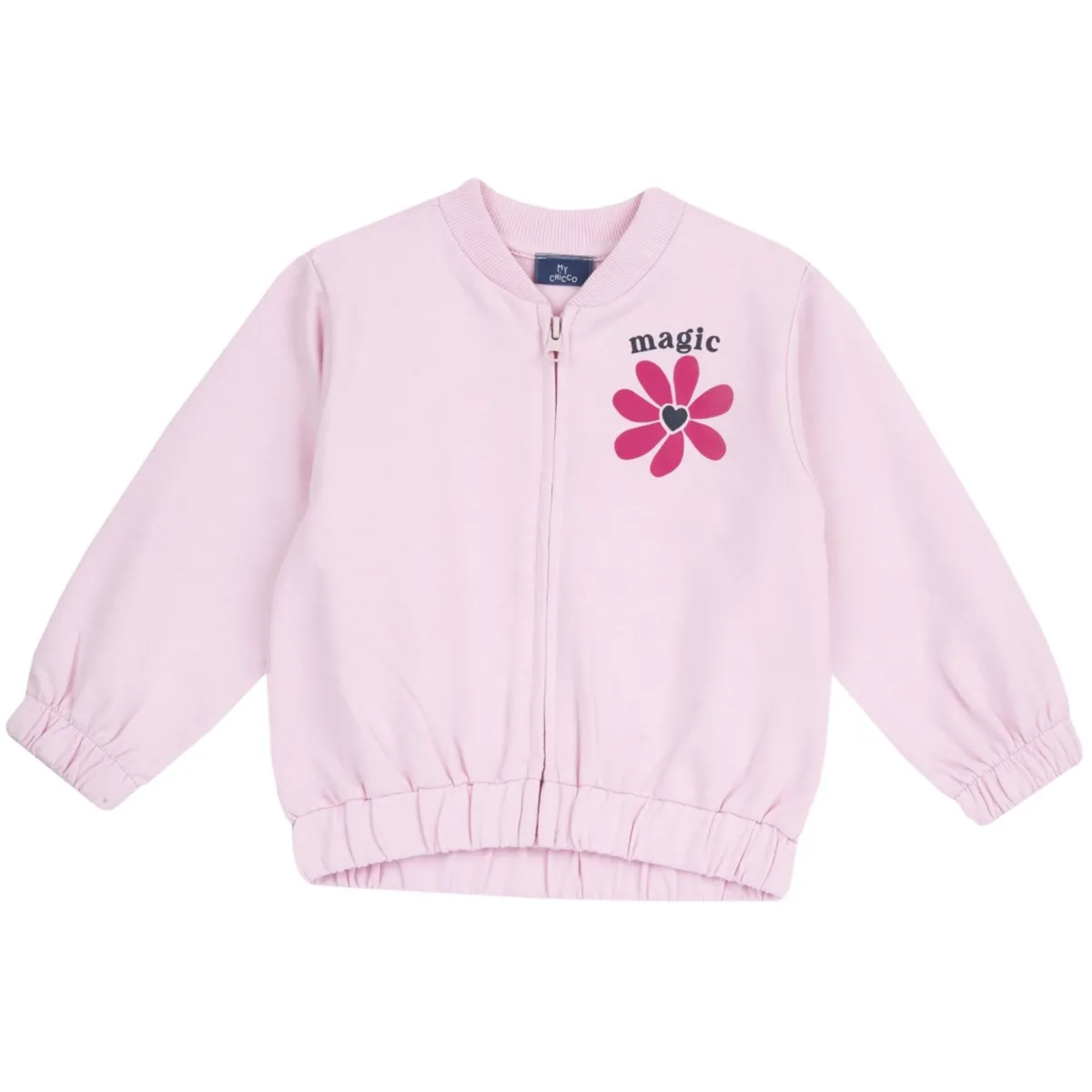 Chicco felpa con zip rosa, fiorellino e scritta magic