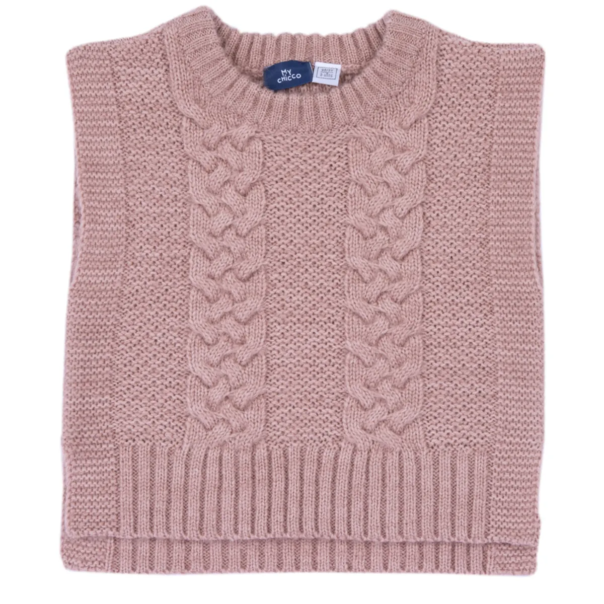 GILET BAMBINA: Gilet intrecciato realizzato in caldo e morbido tessuto. Questo capo Chicco è lavabile in lavatrice, per un’igiene elevata