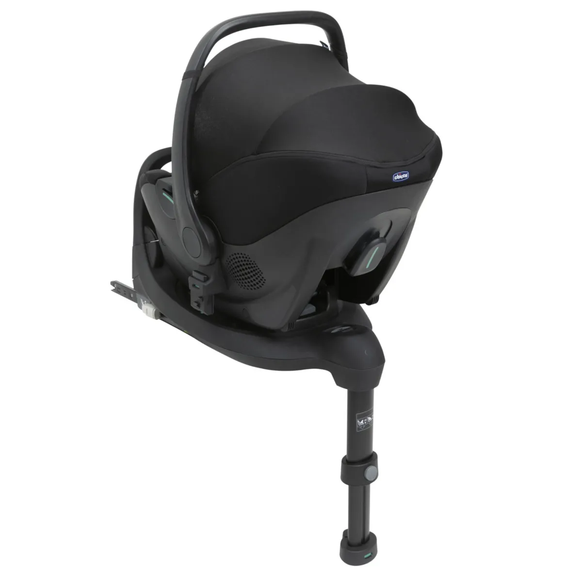– Utilizzando la base Full 360 i-Size con connettori Isofix e la gamba di supporto (accessorio separato).