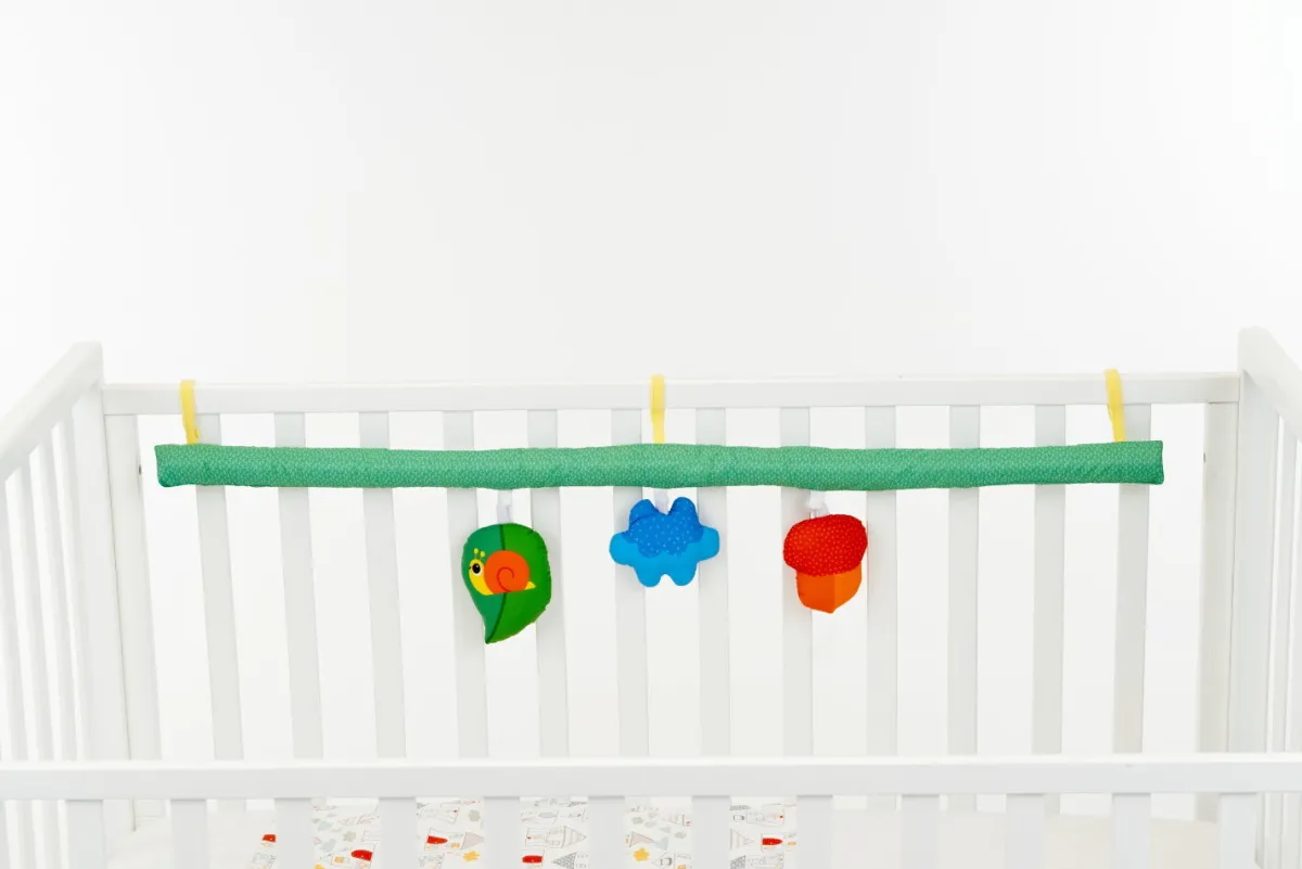 – 3 pendenti removibili in tessuto, di cui uno con sonaglio, che diventano primi giochi per i momenti di divertimento del piccolo.