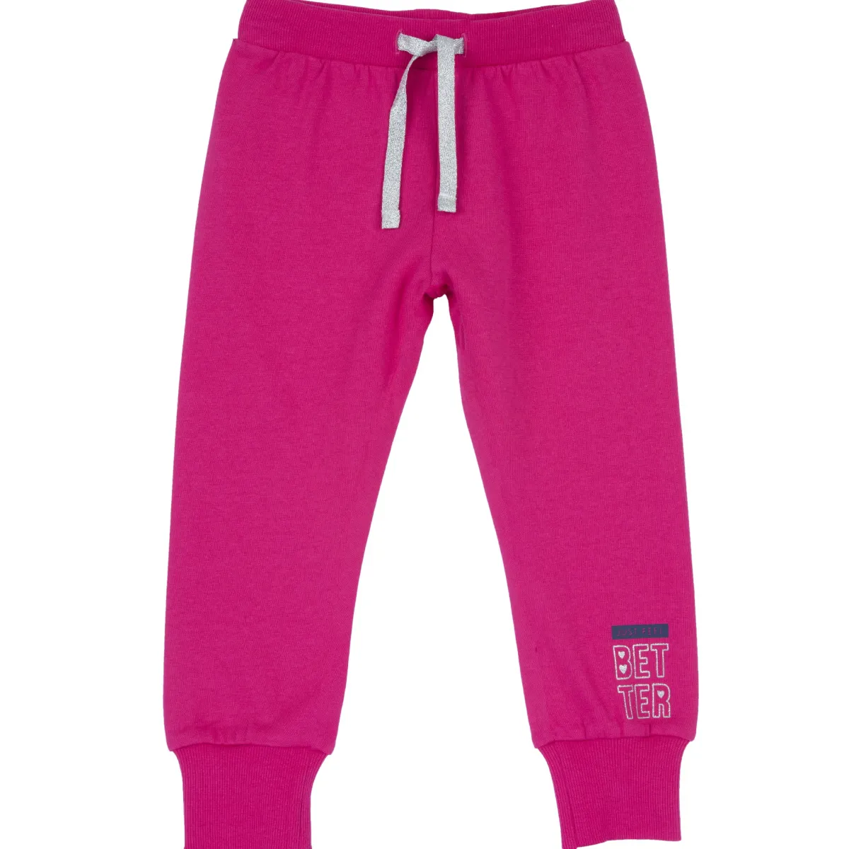 Pantalone lungo per bambina Rosa con polsini stretti alla cavilgia. Realizzato in cotone per garantire comfrot e libertà di movimento