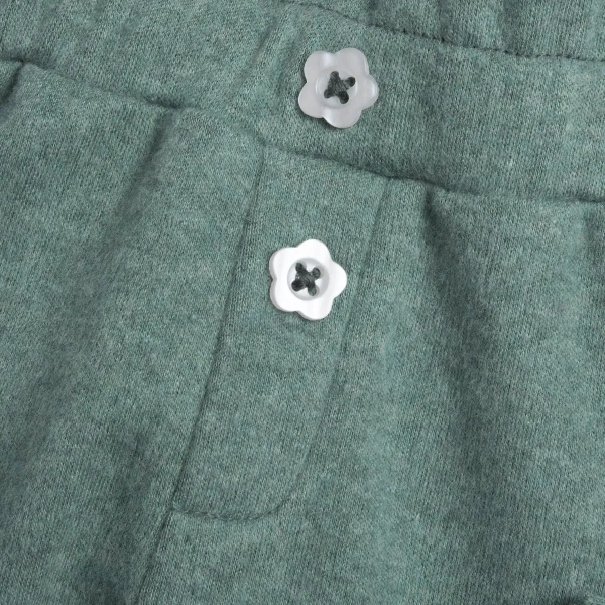 - Vita elasticata e bottoncini decorativi sul davanti effetto madreperla a forma di fiore