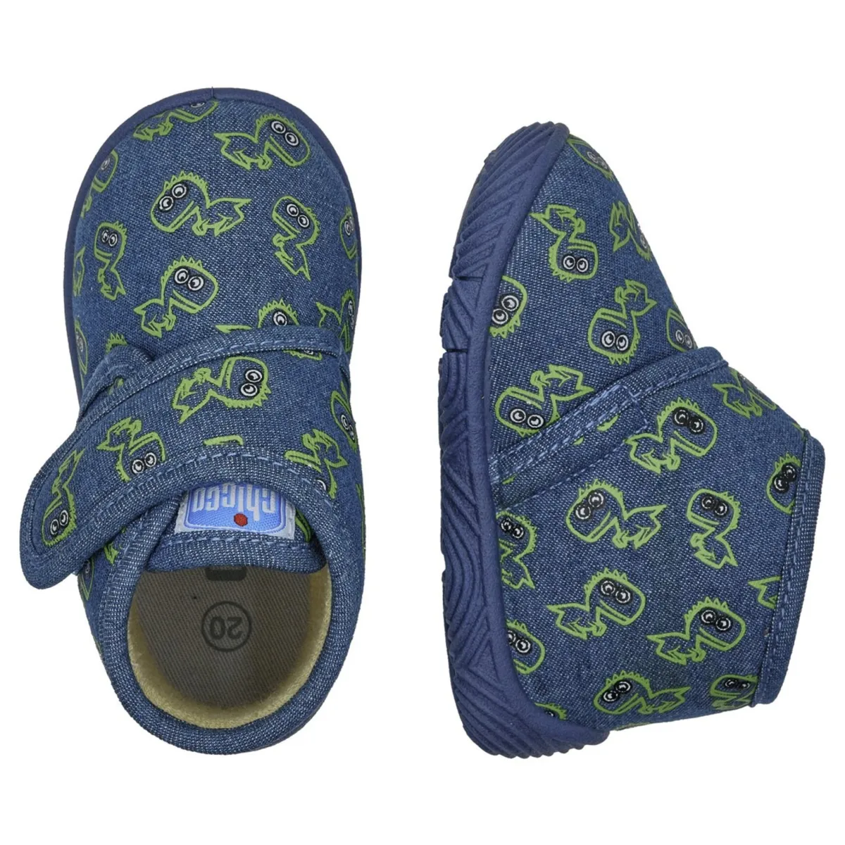 Pantofola Chicco con velcro per facilitare la calzata. Adatta per uso interno/esterno casa. Le pantofole hanno la suola “Flex-zone”, linee di flessione per garantire la naturale flessibilità del piede