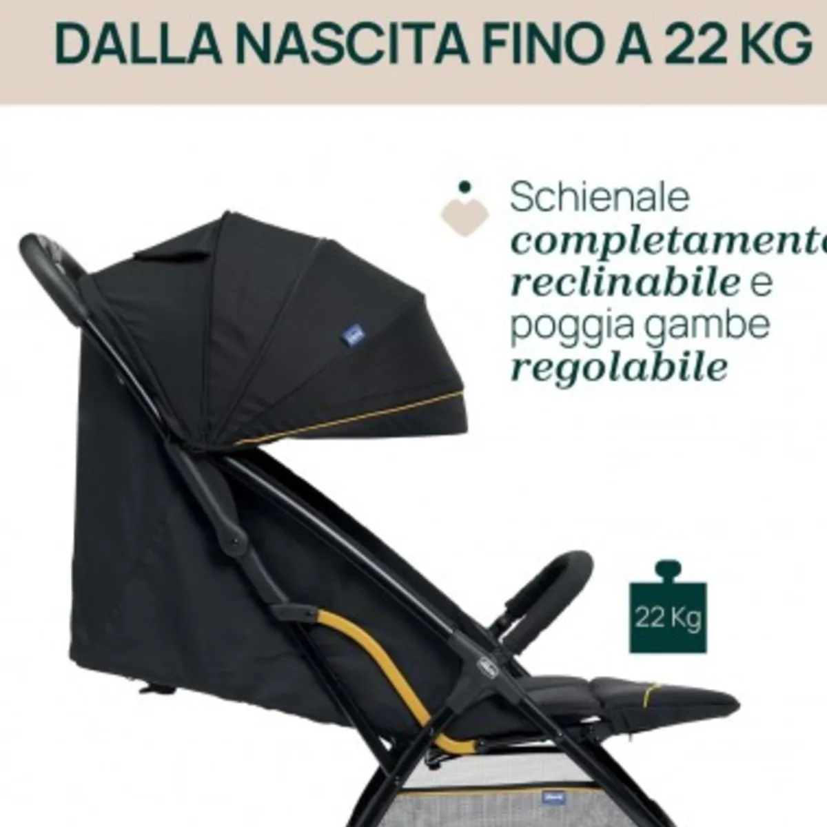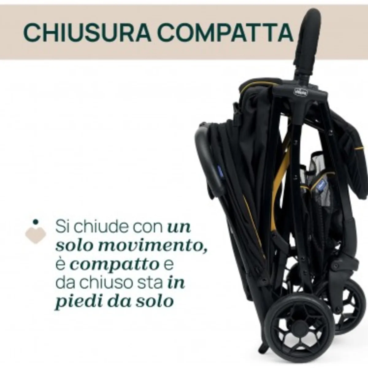 Il passeggino si chiude con un solo movimento ed è leggerissimo: pesa solo 5,9 kg!