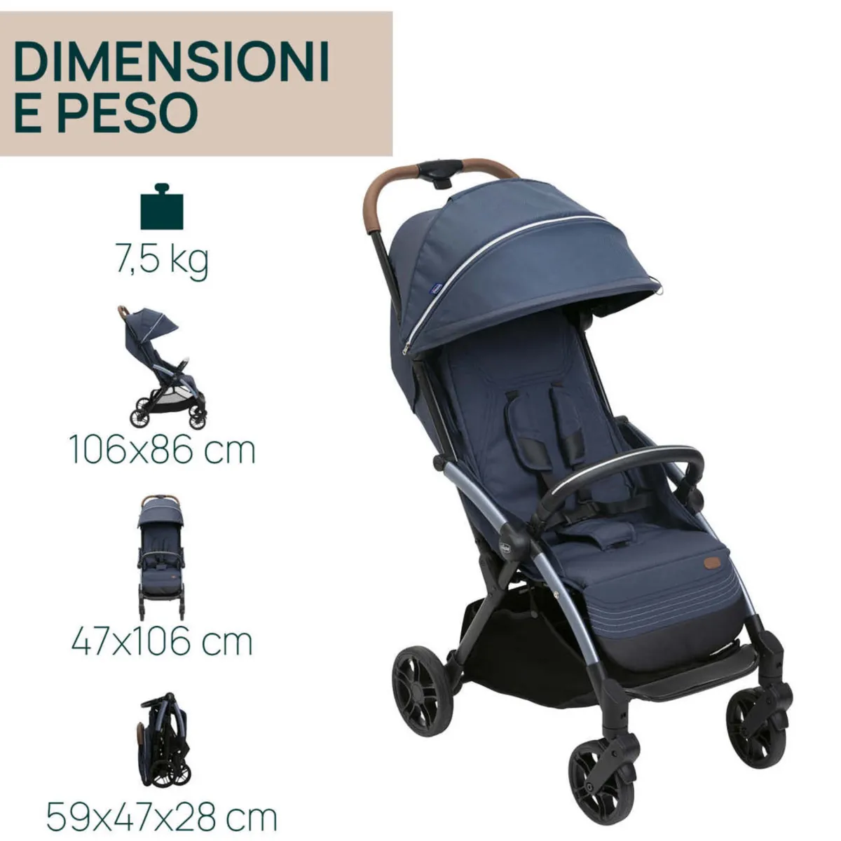 Seduta imbottita ampia e accogliente per il massimo comfort. Cappottina super accessoriata per soddisfare ogni esigenza, estensibile e dotata di finestrella in rete. Protezione UV50+ e trattamento idrorepellente inclusi.