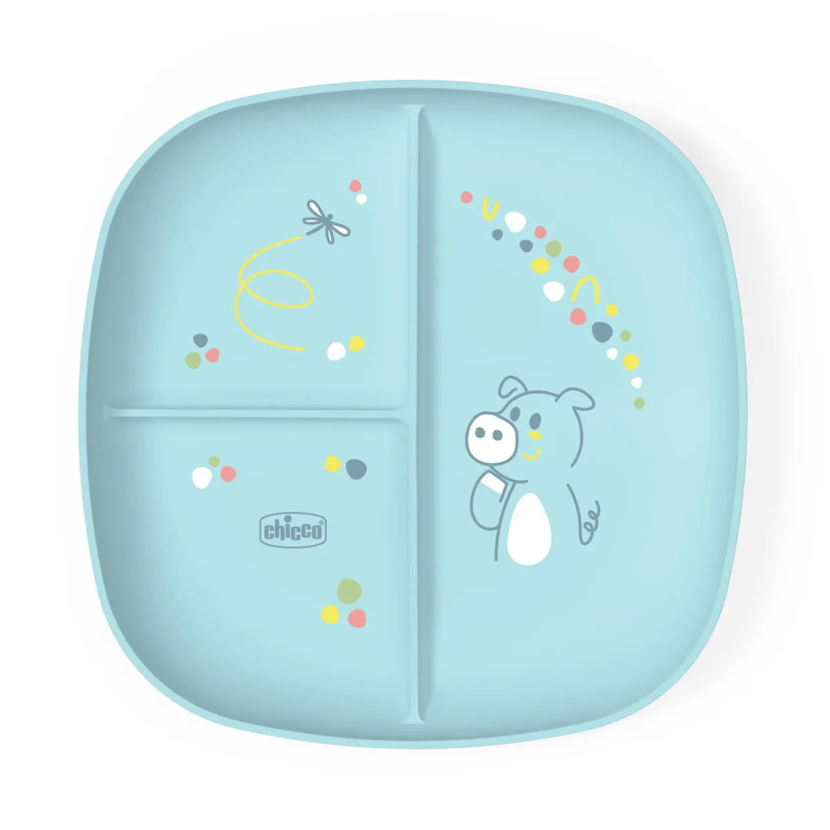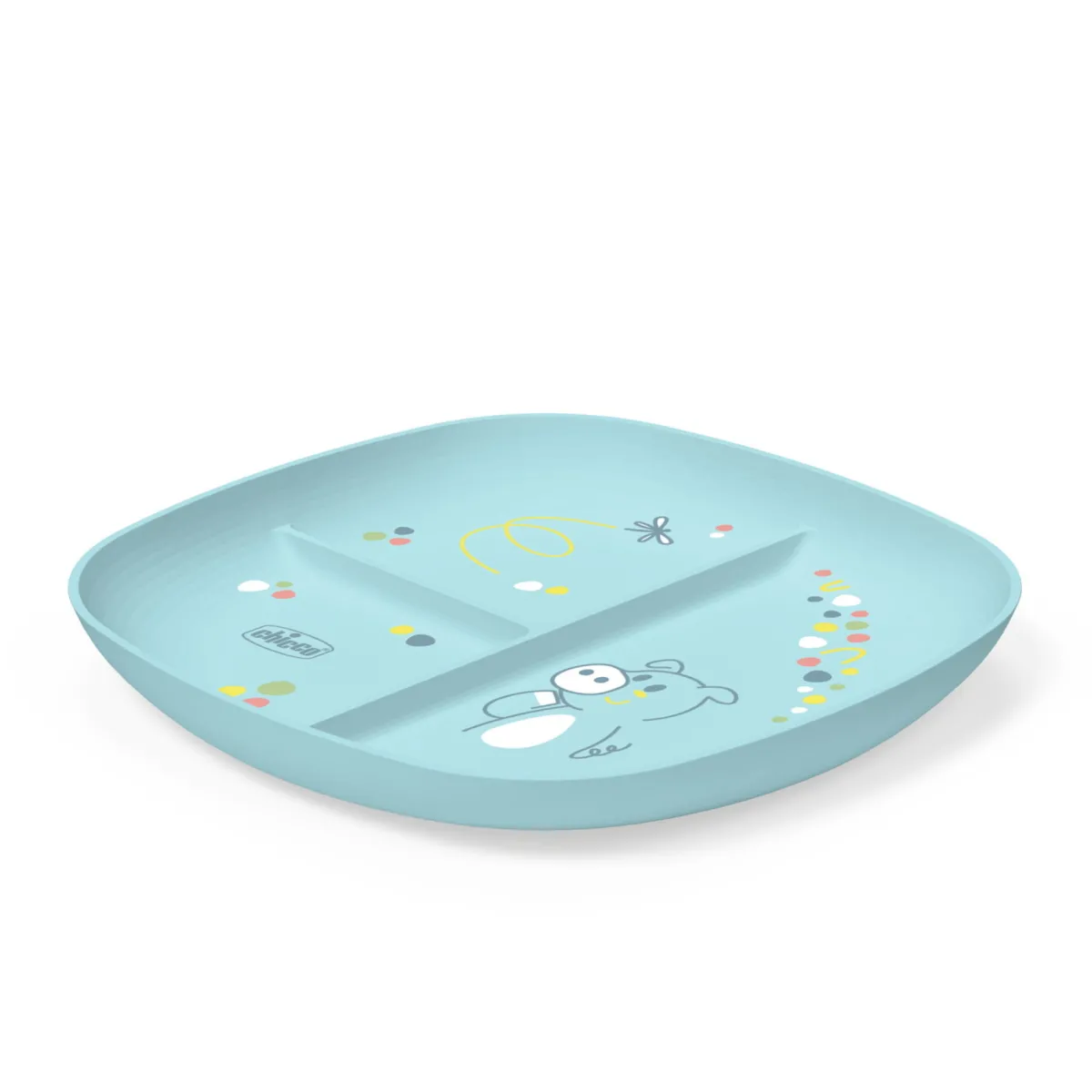 Il Piatto Porzionato Azzurro di Chicco è realizzato con polipropilene resistente, di lunga durata e facile da pulire, anche in lavastoviglie.