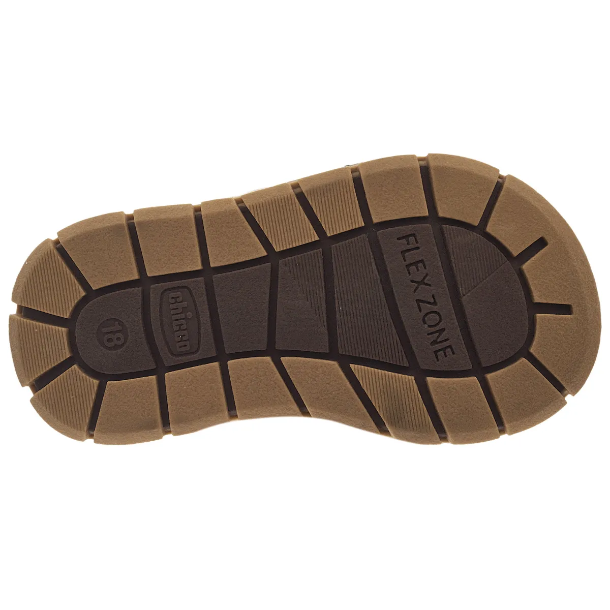 Polacchino Chicco bambino arricchito da un collarino posteriore imbottito e doppia regolazione velcro. Ha il sottopiede “Impronta Naturale Chicco”: sottopiede a spessori diversificati che stimolano la naturale formazione dell’arco plantare e la “Flex-zone”: suola con linee di flessione per garantire la naturale flessibilità del piede