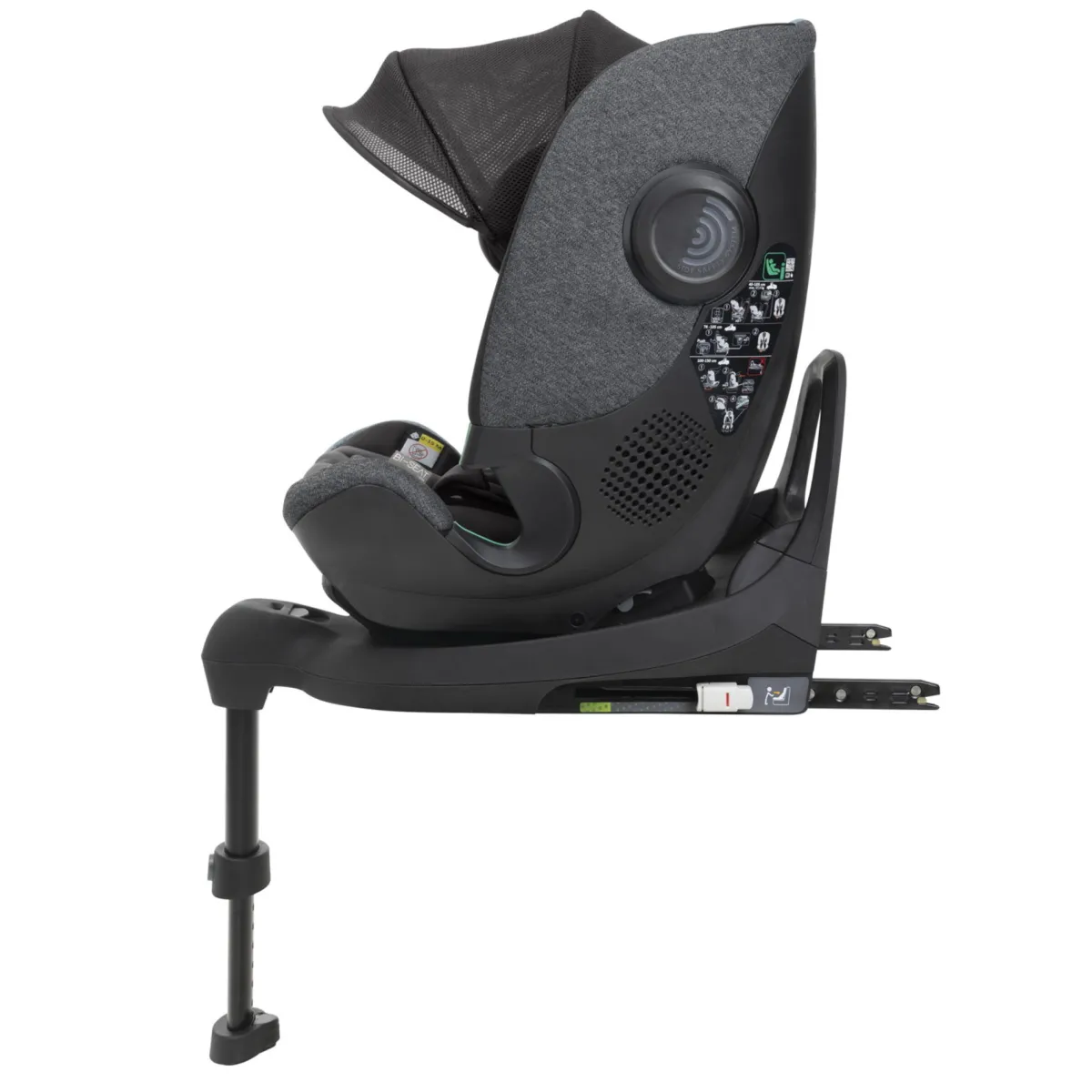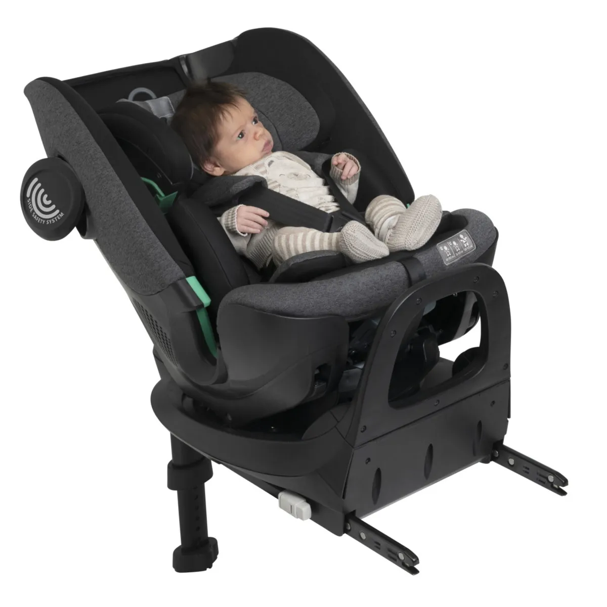 Il seggiolino auto viene installato utilizzando la base Full 360 i-Size (inclusa) e il bambino viene protetto dal sistema di cinture a 5 punti. - RIDUTTORE ENERGY-ABSORBER. Garantisce ai bambini piccoli un extra comfort per tutti i viaggi. È omologato per l’utilizzo da 40 a 60 cm.