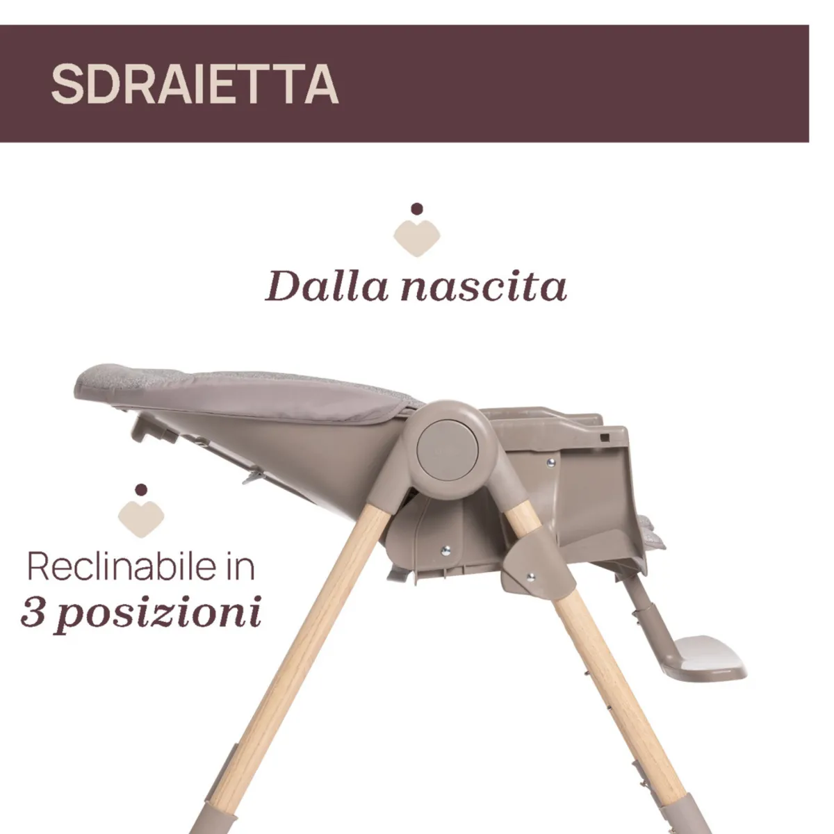 COMFORT DALLA NASCITA: lo schienale può essere reclinato in 3 diverse posizioni per utilizzarlo fin dai primi giorni o per rilassarsi dopo i pasti