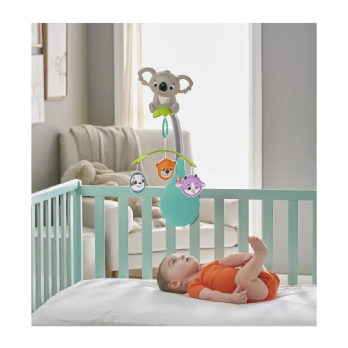La giostrina contiene un simpatico koala e altri 3 giocattoli appesi dalla faccia amichevole con due lati: colorati e ad alto contrasto, per aiutare a supportare il primo sviluppo sensoriale del tuo bambino.