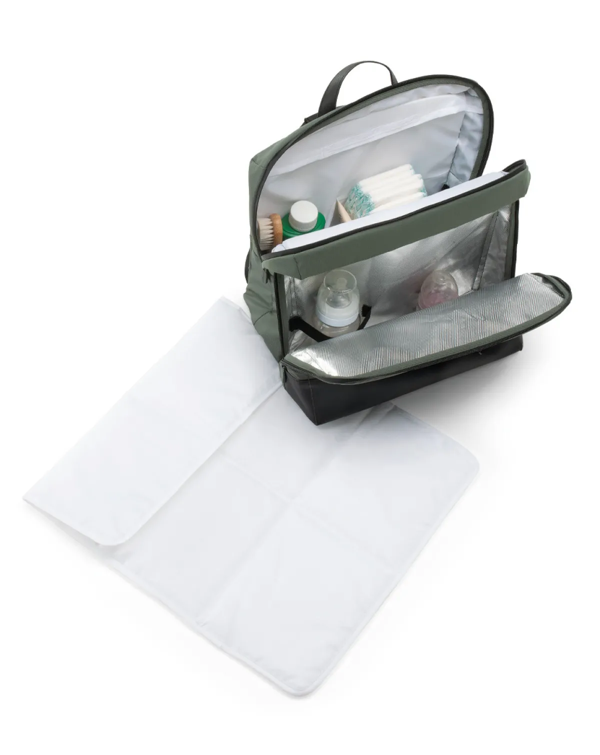 Borsa/zaino mamma con materassino per cambio con cerniere H2O resistenti all’acqua.