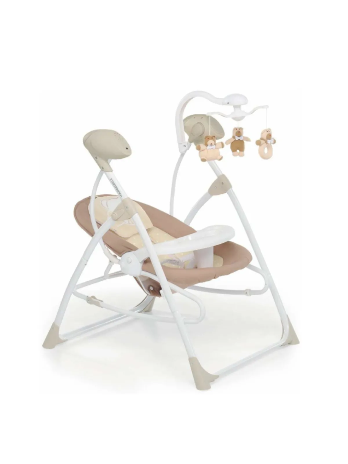 E’ una sdraietta, altalena e dondolo musicale con dispositivo di movimento e diverse melodie. Si può utilizzare anche come sdraietta a dondolo. Dotata di telecomando per attivare a distanza il movimento della seduta e azionare le melodie musicali, con volume regolabile. Funzionamento a batterie e/o alimentazione a corrente.