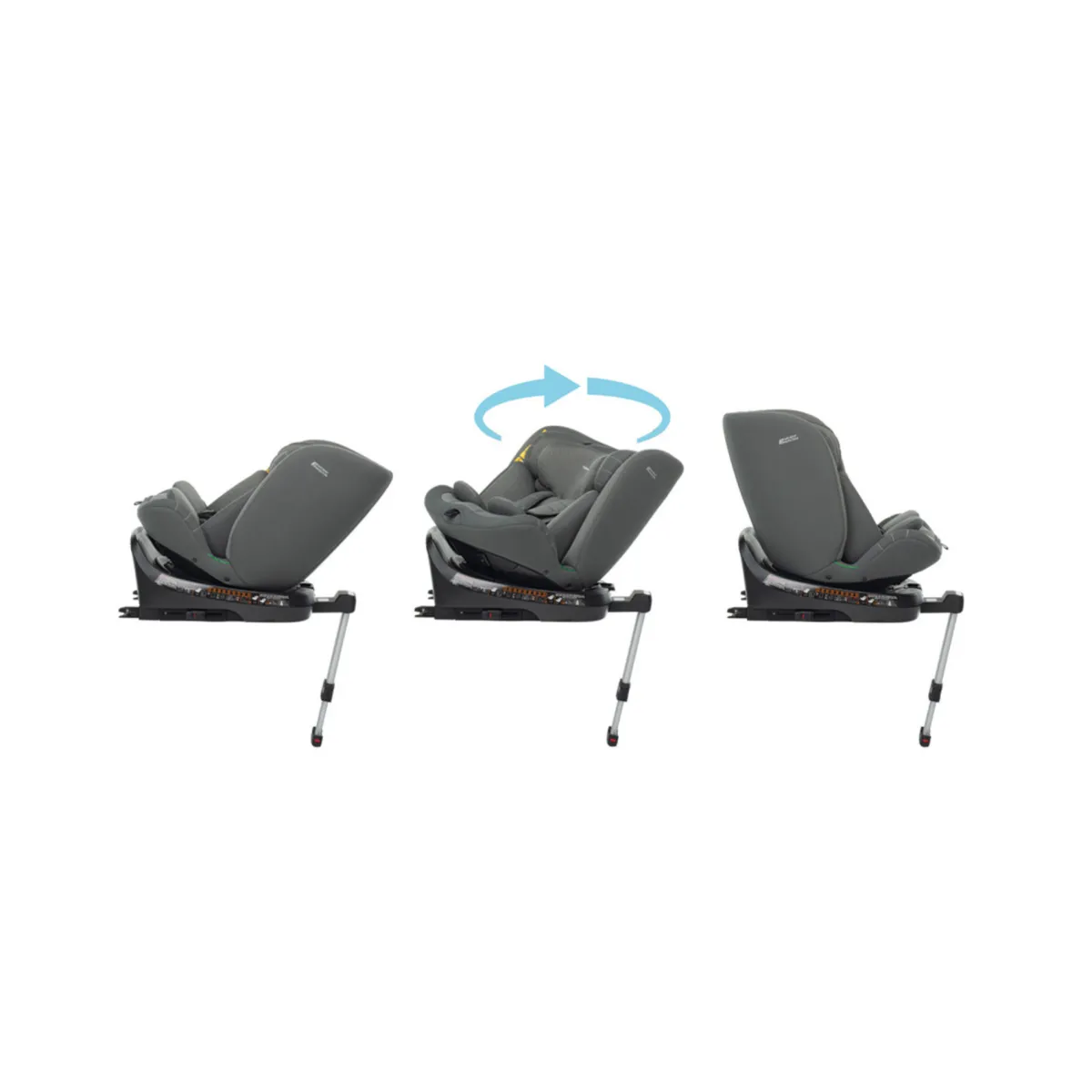 Utilizzabile da 40 a 105cm nel senso contrario di marcia. Riduttore primi mesi ergonomico e removibile. Nel senso di marcia utilizzabile da 76cm e 15 mesi di età del bambino, staffa riponibile a scomparsa sotto la scocca.