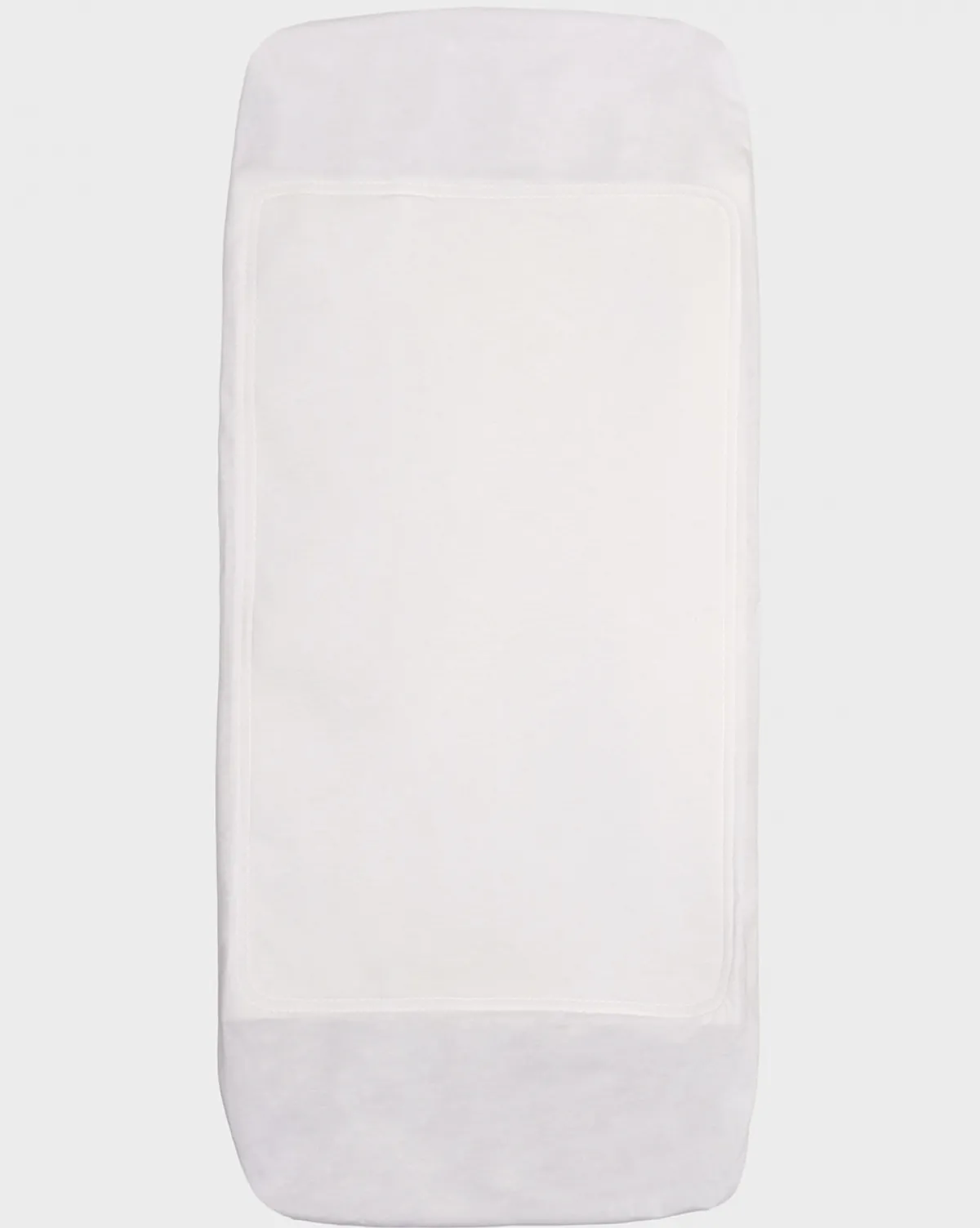 Lenzuolo salvamaterasso con angoli color bianco per carrozzina impermeabile e assorbente, garantisce protezione e igiene proteggendo il materasso. Dimensioni: 35×72 cm