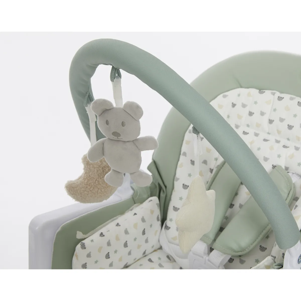 La barra gioco trasforma il seggiolone in uno stimolante centro interattivo grazie ai tre soffici pupazzetti