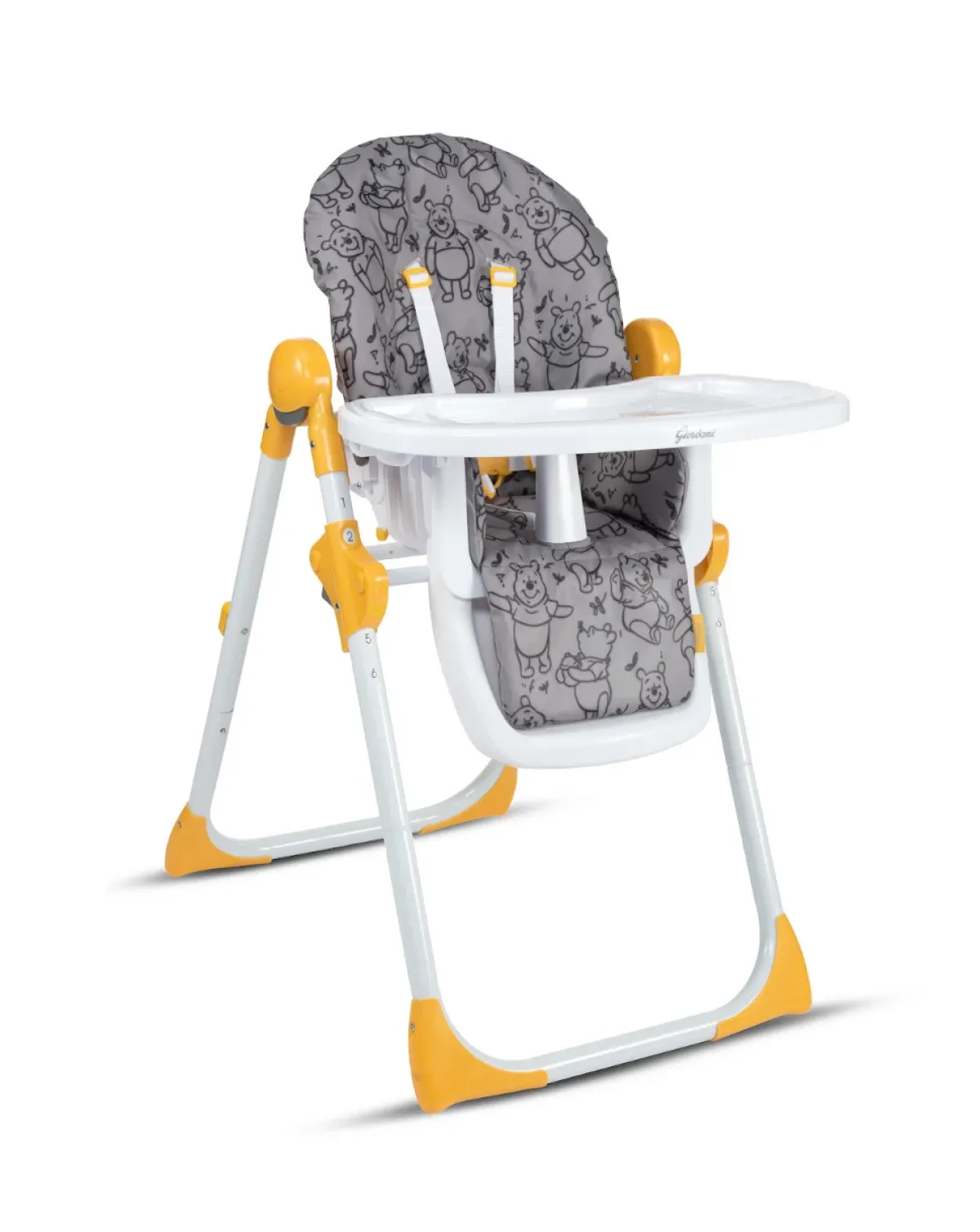 Seggiolone utilizzabile da 6 mesi più. Chiusura a libro schienale regolabile in 3 posizioni, altezza seduta regolabile in 6 posizioni, cintura a 5 punti e vassoio removibile.