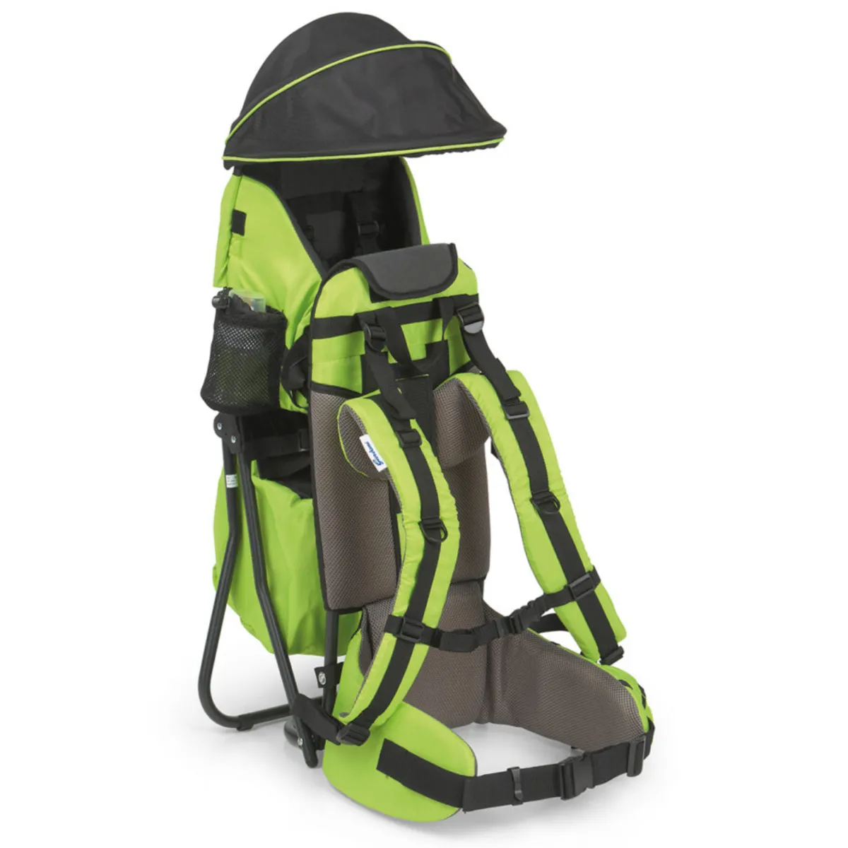 Pratico zaino tecnico per le vostre passeggiate. E’ leggero, in alluminio, con capottina parasole amovibile e protezione pioggia, imbottito e con seduta interna regolabile in altezza. Aperto sta in piedi da solo, è dotato di pratici spallacci super imbottiti per il massimo comfort, di tasche portaoggetti e portabiberon. E’ adatto per bambini da 6 mesi circa fino a un massimo di 15 kg.