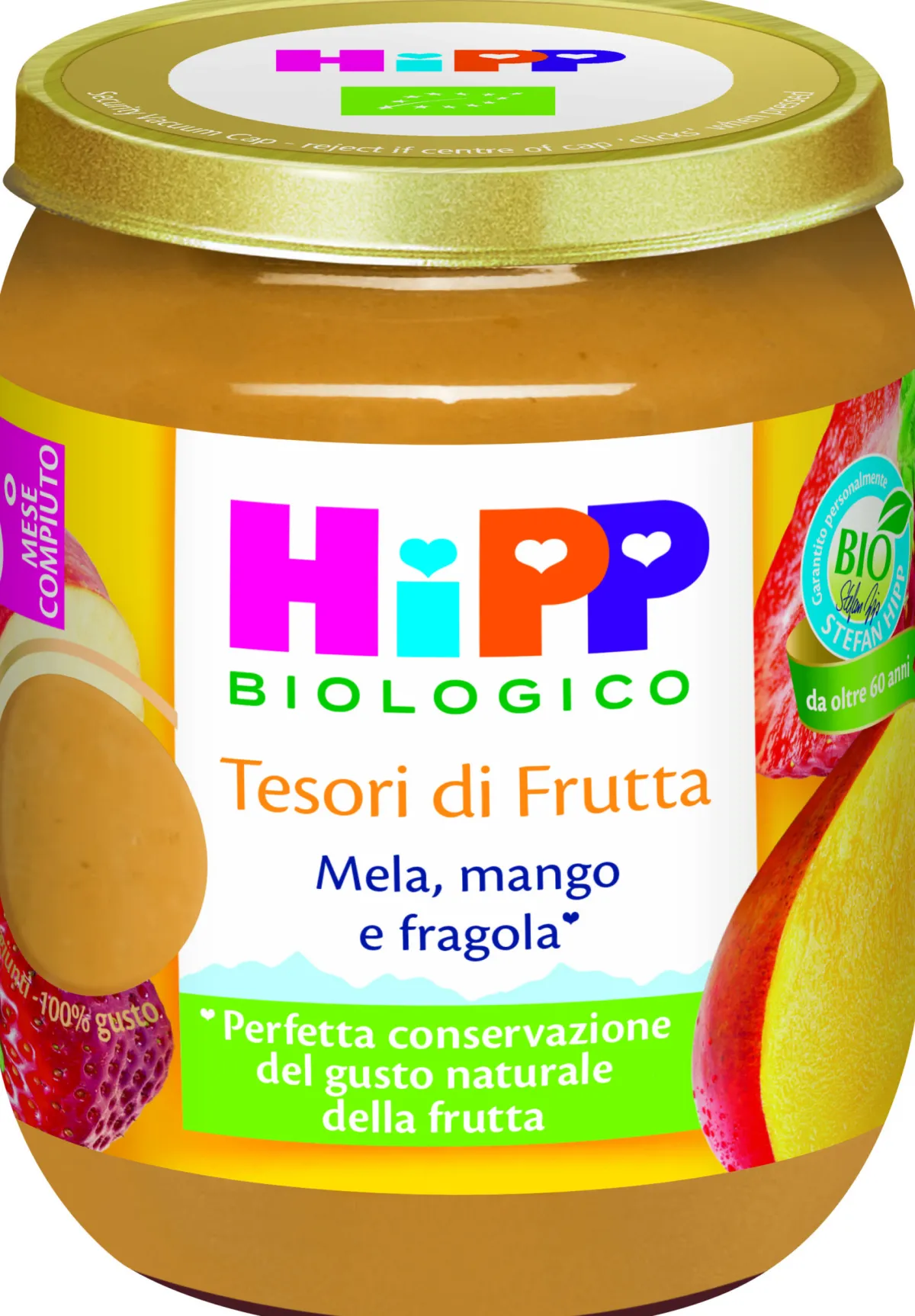 Hipp Tesori di Frutta è un omogeneizzato biologico di frutta a base di mela, fragola e mango indicato per l’alimentazione di bambini dal 6° mese di età.