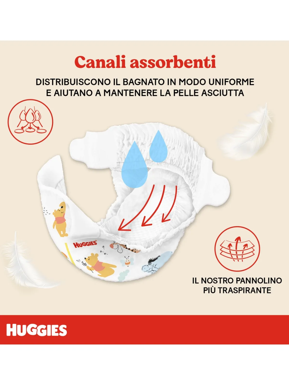 Huggies® Extra Care Bebè è il pannolino progettato per le esigenze particolari del neonato e assorbe la pupù liquida grazie ai suoi soffici cuscinetti assorbenti.