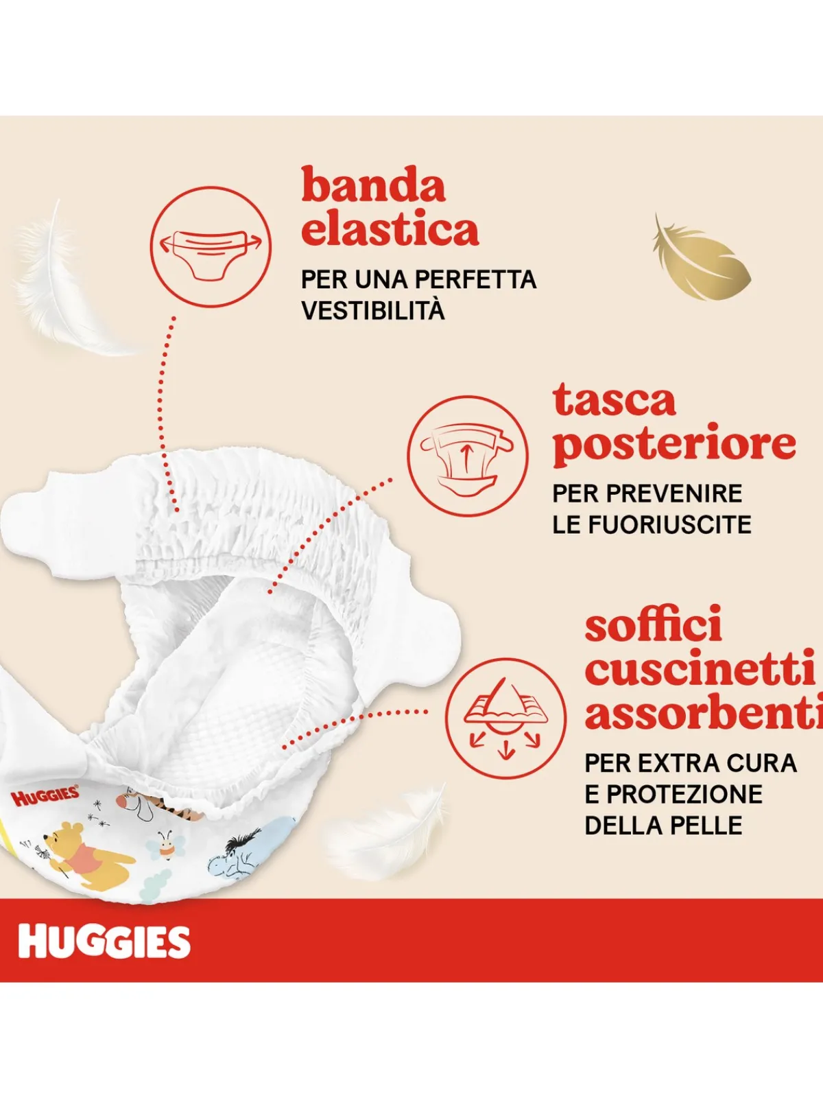 Huggies® Extra Care Bebè è disponibile nelle taglie 1 e 2 e decorato con i personaggi Disney® Winnie The Pooh.