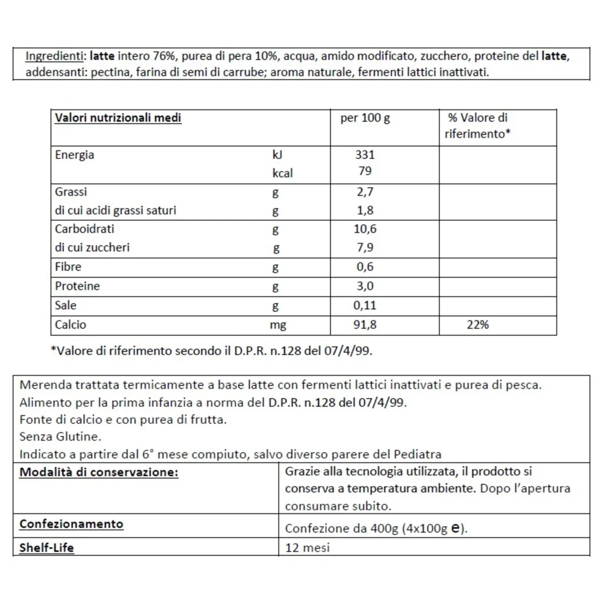 La Merenda al Latte Pera è fonte di calcio e unisce il gusto autentico del latte con quello fresco della frutta. Indicata a partire dal 6° mese compiuto, per momenti di gustosa bontà!
