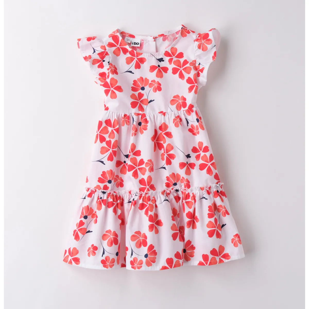 Abito da bambina iDO da 9 mesi a 8 anni realizzato in 100% cotone. Il modello presenta apertura sul retro con bottoni, fantasia allover floreale. Lunghezza al ginocchio.