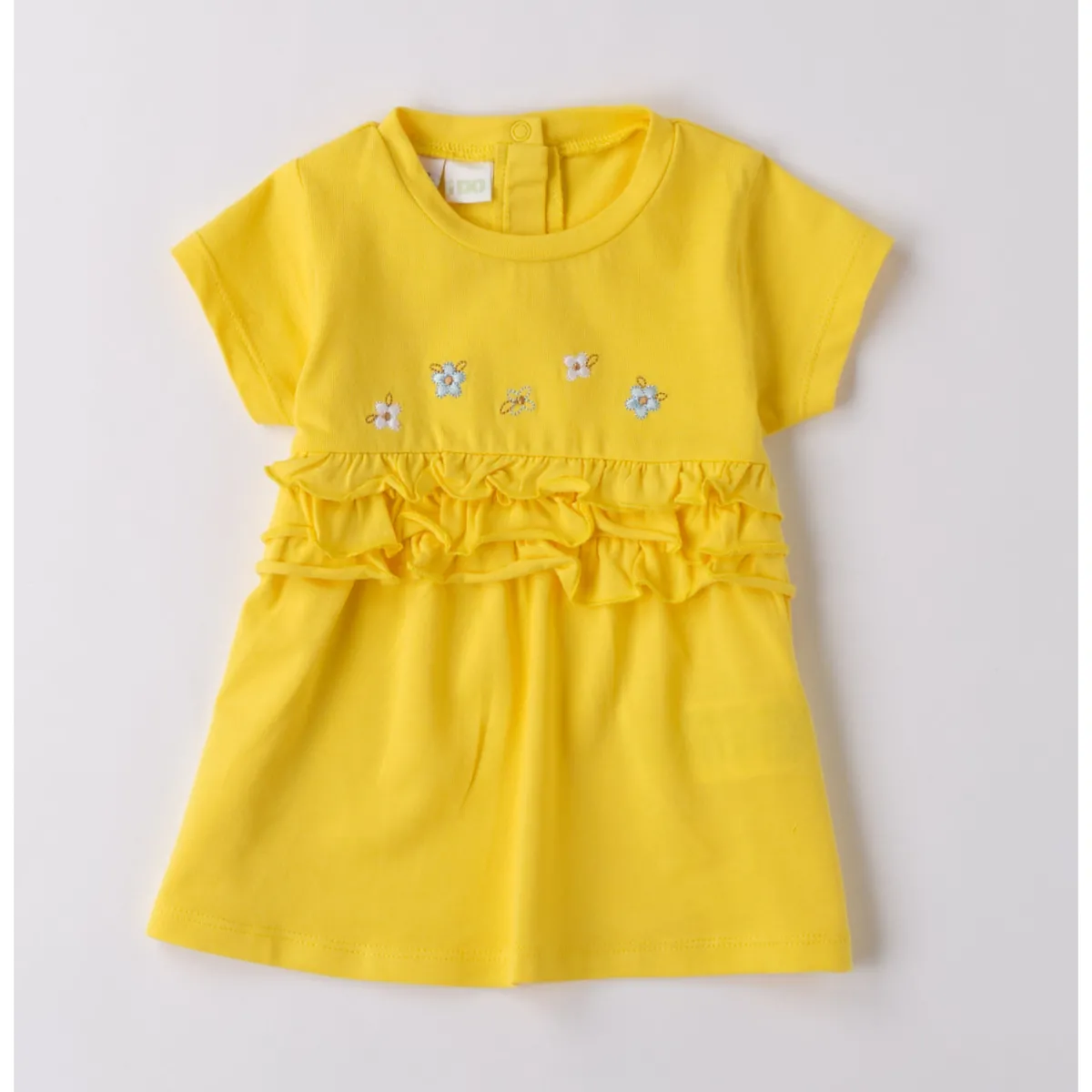 Abito neonata iDO 1-24 mesi realizzato in jersey stretch di cotone. Il modello presenta apertura sul retro con bottoni a pressione per agevolare il cambio e la vestizione, fantasia tinta unita con ruches frontale. Lunghezza sopra al ginocchio. Scegliendo i nostri prodotti in cotone, sostieni il nostro investimento nella missione Better Cotton. La fornitura di questo prodotto avviene tramite un sistema di bilancio di massa e potrebbe non contenere Better Cotton. Leggi di più su bettercotton.org/massbalance Scopri tutta la selezione abiti per neonata firmata iDO!