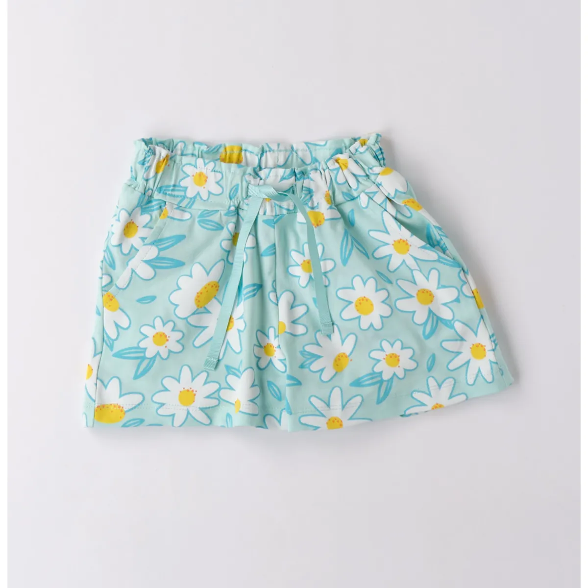Shorts per bambina iDO da 9 mesi a 8 anni realizzati in jersey stretch di cotone. Il modello presenta vita elasticizzata con coulisse e fantasia di fiori allover.