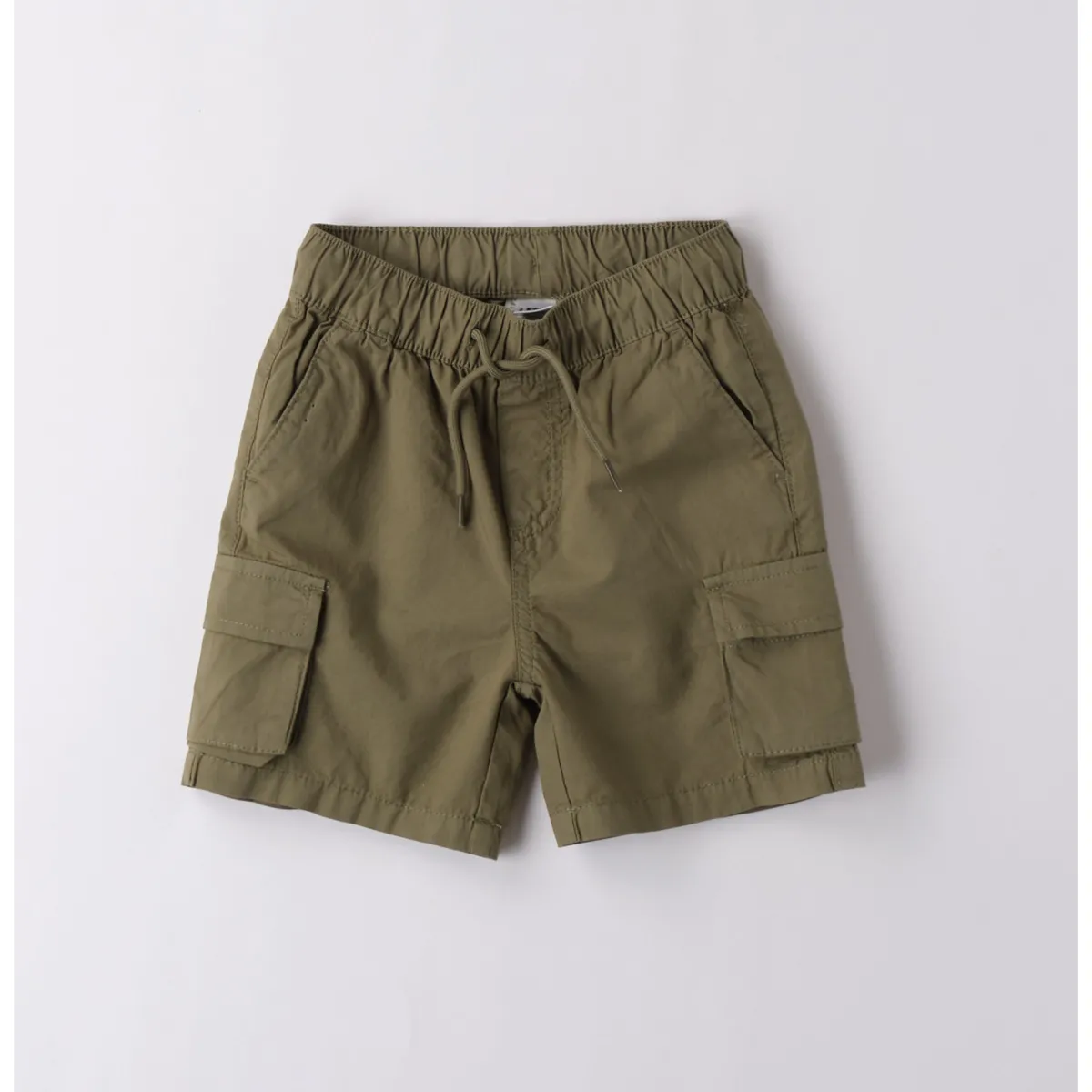 Pantalone corto iDO per bambino da 9 mesi a 8 anni realizzato in fresco popeline 100% cotone. Modello con tasconi laterali ed elastico in vita con coulisse. Regular fit.