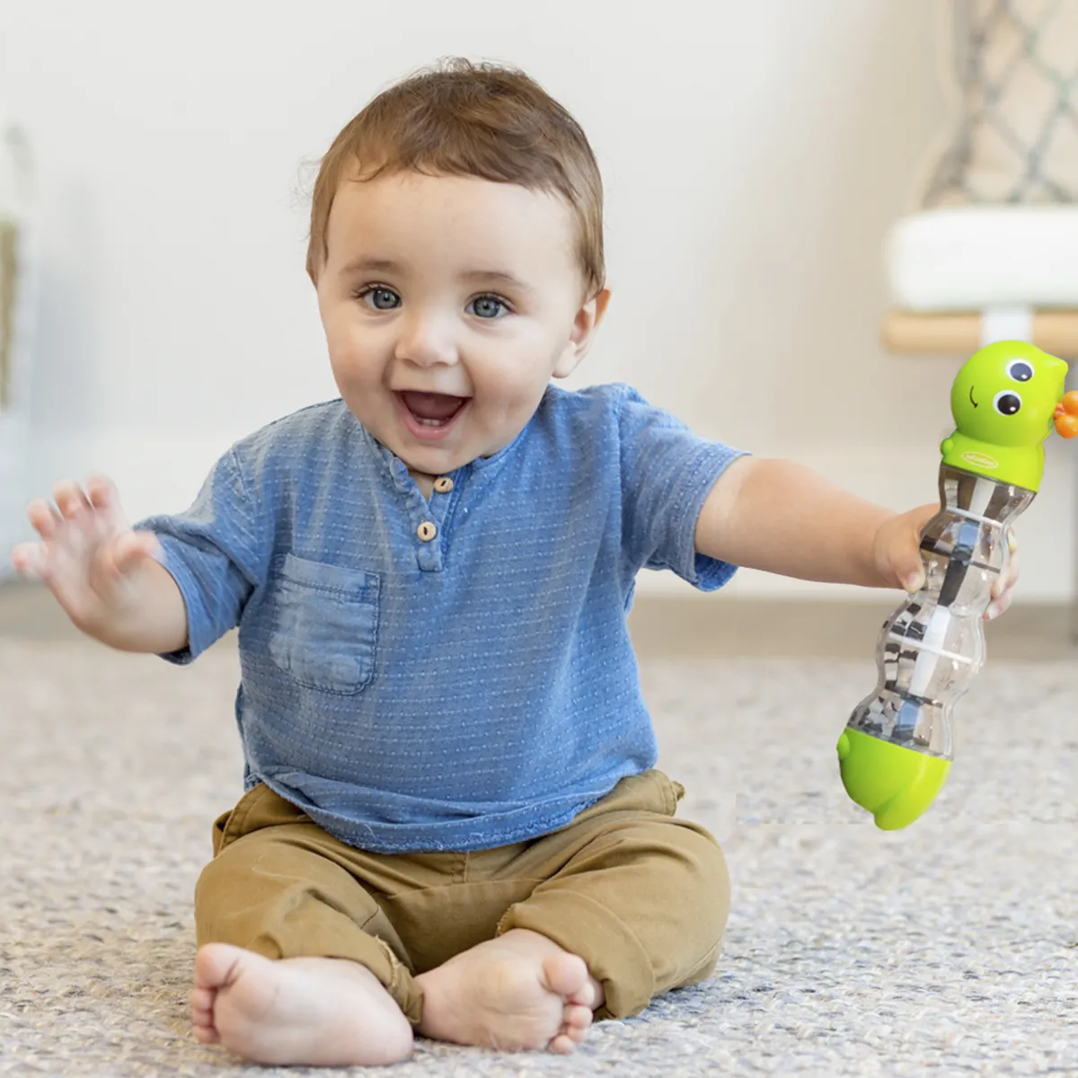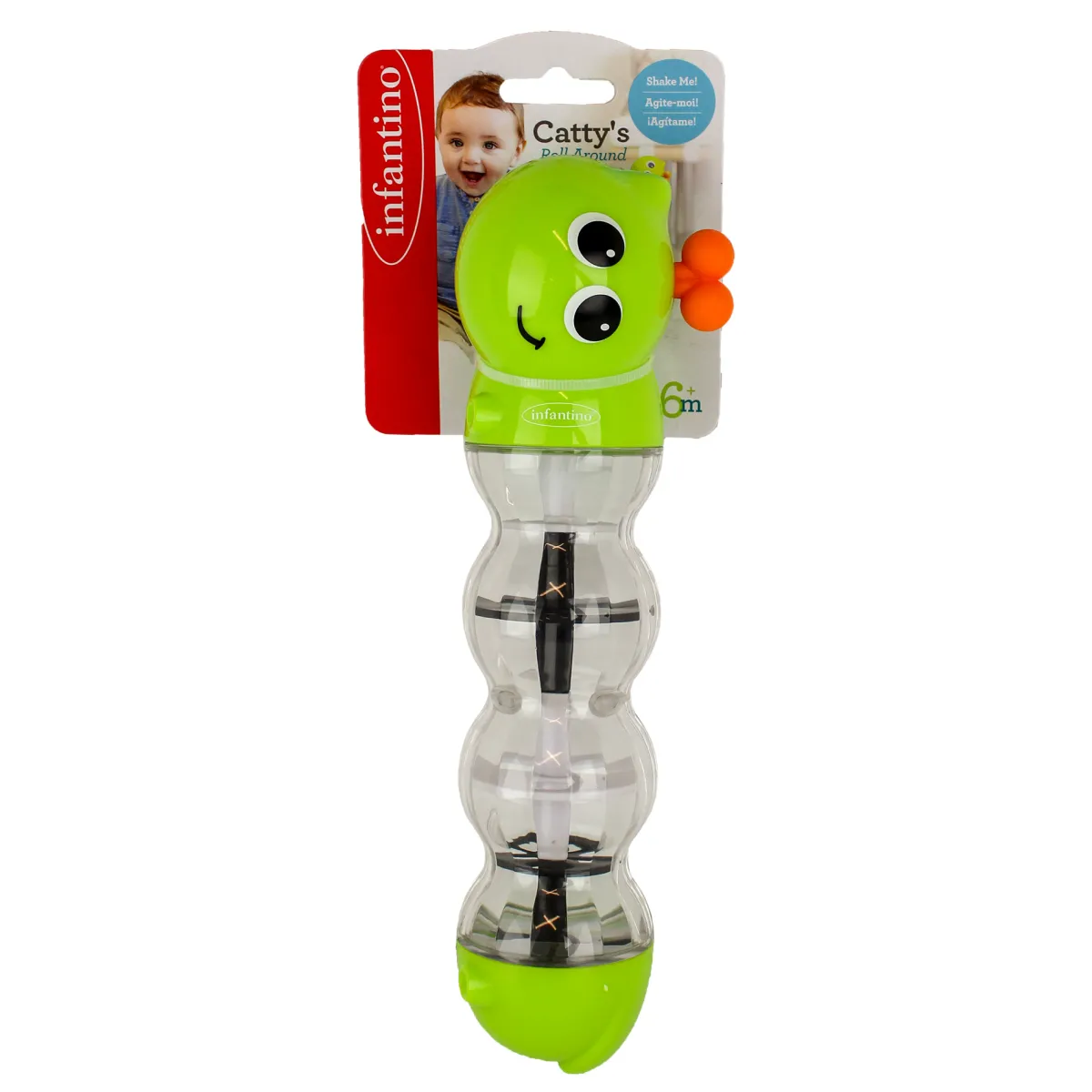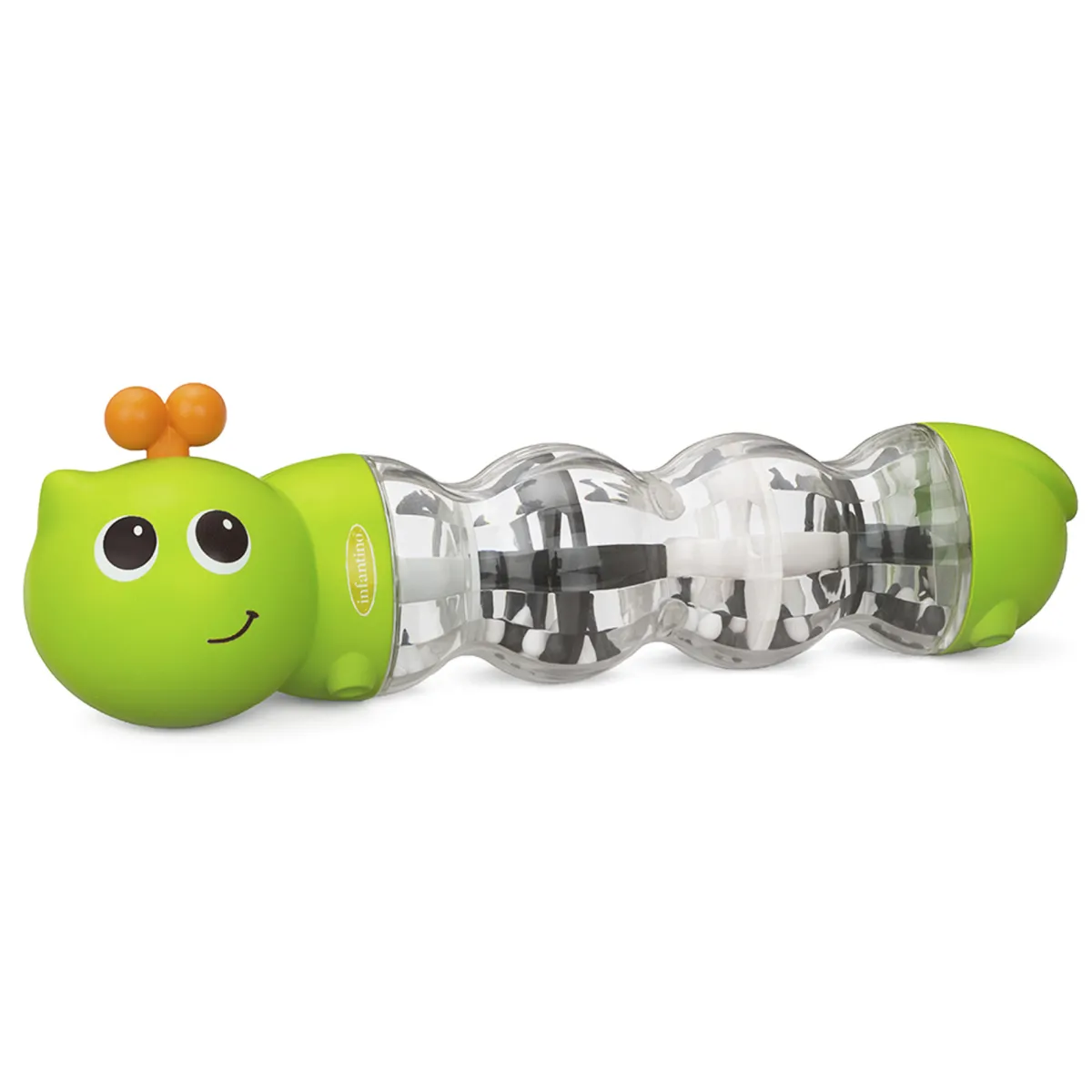 – Muovendo il bruco, le perline all’interno rotoleranno su e giù e il bambino sarà affascinato dal rumore che creeranno.