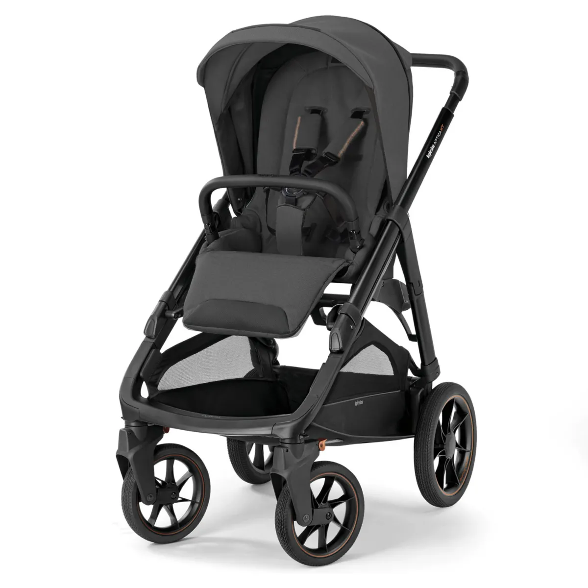 - La seduta è molto ampia e imbottita (55 x 37 cm). Lo schienale, reclinabile in 4 posizioni, si stende fino alla posizione nanna, tramite un comando centralizzato. Dotato di pedanina poggiapiedi. Gli spallacci e lo spartigambe sono imbottiti, evitando il contatto diretto delle cinghie, con la delicata pelle del bambino.