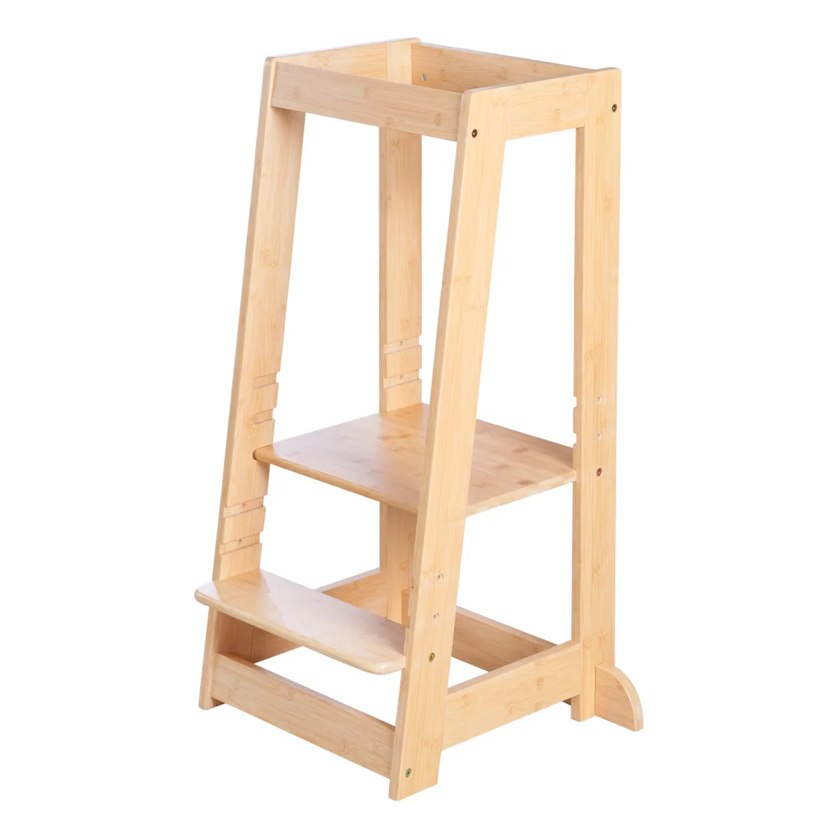 Torre apprendimento che permette al bambino di raggiungere autonomamente e in totale sicurezza nuovi spazi e piani di appoggio. Realizzata in bamboo certificato FSC per una massima solidità e resistenza all’acqua. Dotata di 3 livelli del piano di appoggio e del gradino, per avere 3 diversi piani a cm. 35, cm. 40 e cm. 45.