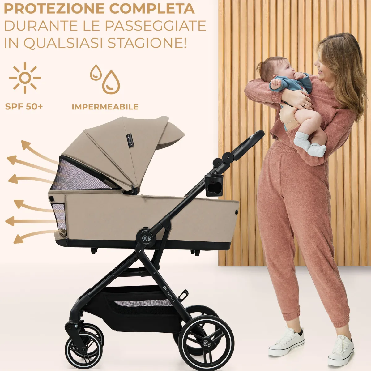 Creato per i bambini dalla nascita fino all’età di 4 anni circa (22 kg). I neonati godranno di un’ampia e comoda navicella dotata di un morbido materassino. E quando il bambino crescerà un po’, potrete passare alla seduta da passeggino leggero, la quale può essere installata sia in direzione di marcia che contro.