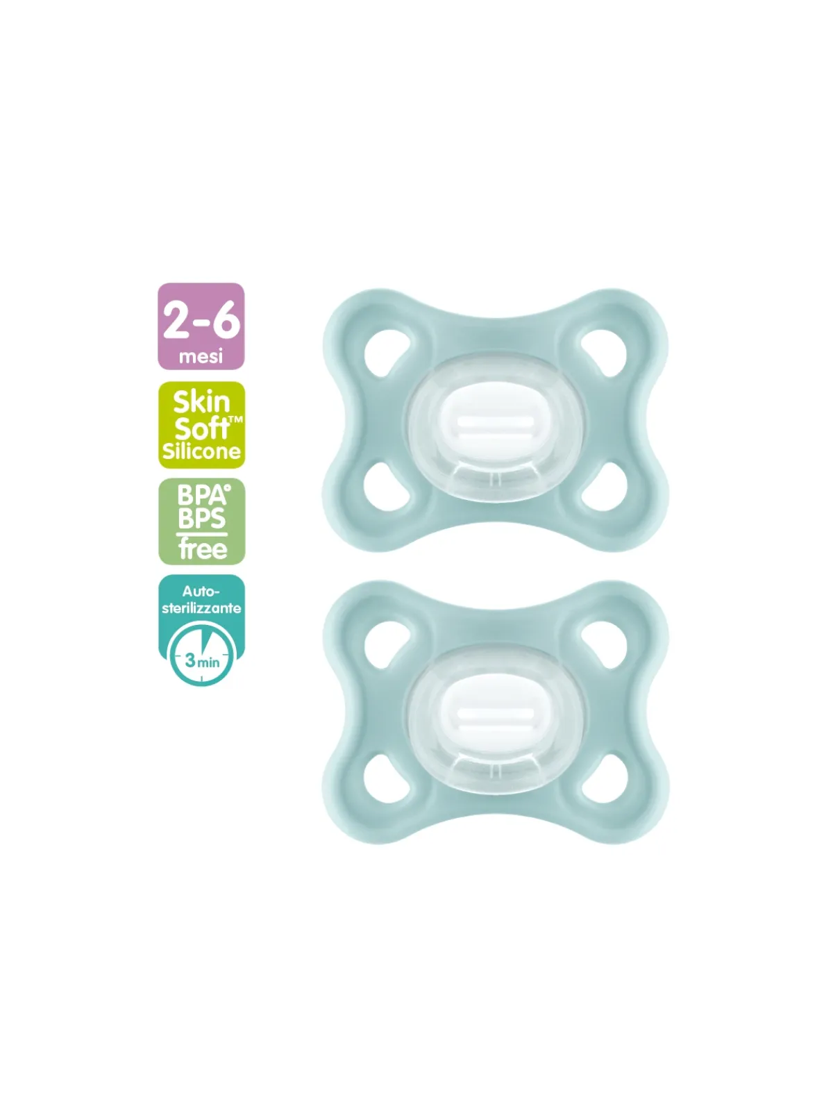 Il ciuccio MAM Comfort risponde alla norma EN 1400 ed è senza BPA e BPS. Dai 6 mesi il proseguimento naturale è con il ciuccio MAM Perfect, con tettarella ultra sottile e flessibile o con il ciuccio MAM Supreme, che coniuga alla tettarella ultrasottile e flessibile una mascherina con ampi fori di ventilazione adatta per le pelli più sensibili. MAM Perfect e MAM Supreme sono stati sviluppati con l’aiuto di ortodontisti e pediatri e testato clinicamente: il collo della tettarella in media il 60% più sottile3 e 4 volte più flessibile3 dei normali succhietti, permette una chiusura più naturale della bocca del bambino, riducendo il rischio di disallineamento. Inoltre MAM Supreme ha una mascherina con ampi fori di ventilazione adatta per le pelli più sensibili.