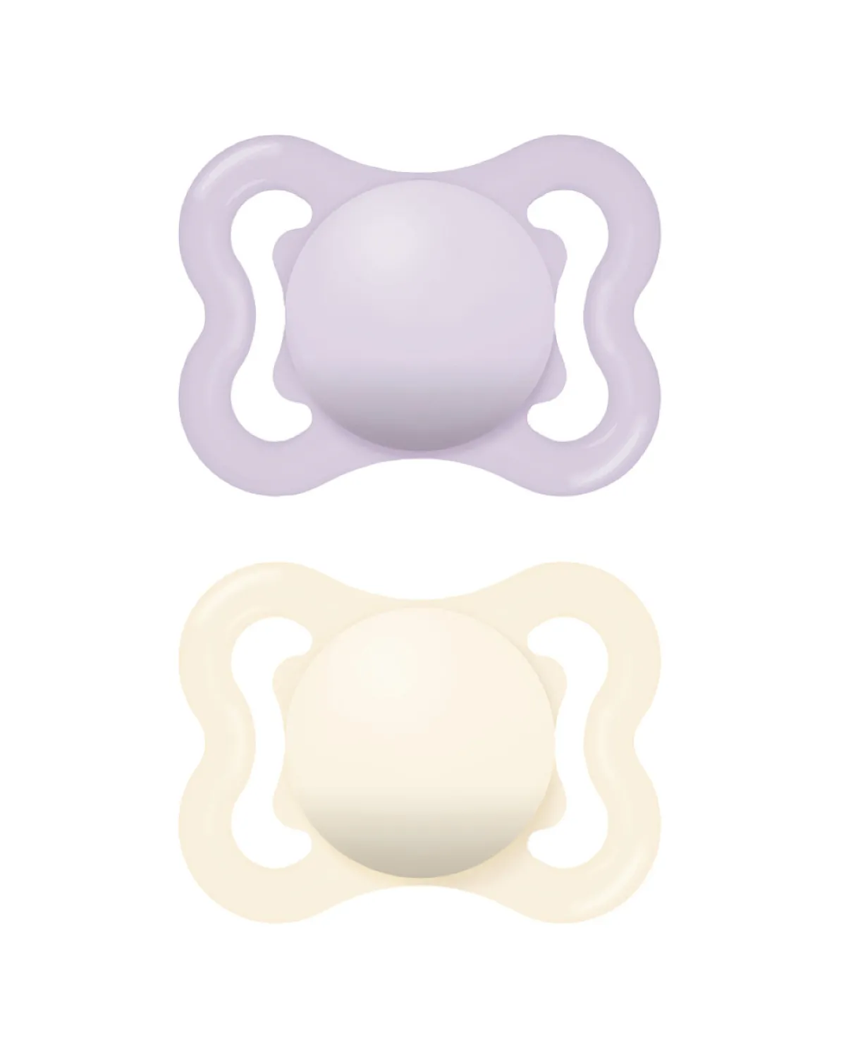 Mam Air set da 2 ciucci in caucciù, bio-circolare – ciuccio morbido grazie al design innovativo. La pelle dei bimbi è particolarmente sensibile e si irrita facilmente, con il set da 2 ciucci Mam ha voluto creare un prodotto anti-irritazione.