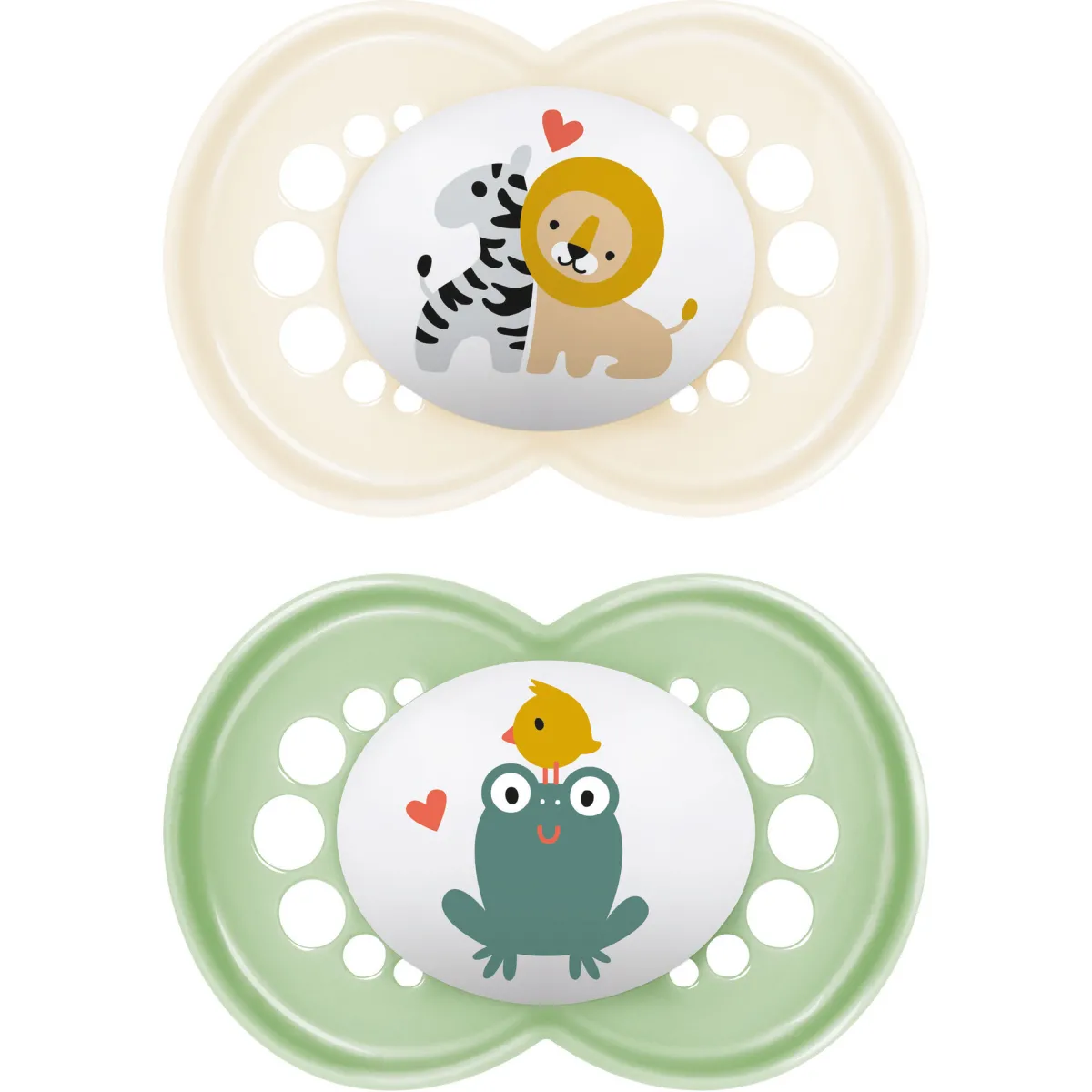 Dettagli del prodotto: set da 2 ciucci Mam Original in caucciù, bio-circolare naturale, tettarella simmetrica che si adatta alla bocca estremamente delicato sulla pelle dei bimbi grazie ai fori e ai microrilievi.