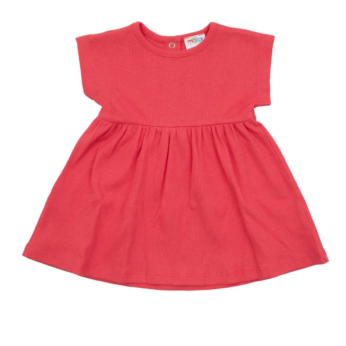 Tenero vestito a costina da bambina. Il capo si presenta in tinta unita corallo; sotto la vita in un pezzo unico la gonna a pieghe morbide. Modelllo giromanica. La vestibilità è morbida e pratica grazie ai bottoni a clip sulla schiena. Accessori non in vendita. La confezione contiene solo il capo di abbigliamento