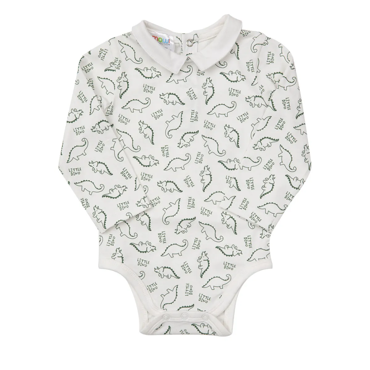 Body jersey stretch con colletto . Stampa fantasia dinosauri e divertenti scritte . Il capo presenta una comoda apertura entrogamba con bottoncini a pressione per facilitare il cambio pannolino. Vestibilità comoda. Un modello super classico indispensabile per il guardaroba della tua bimba..