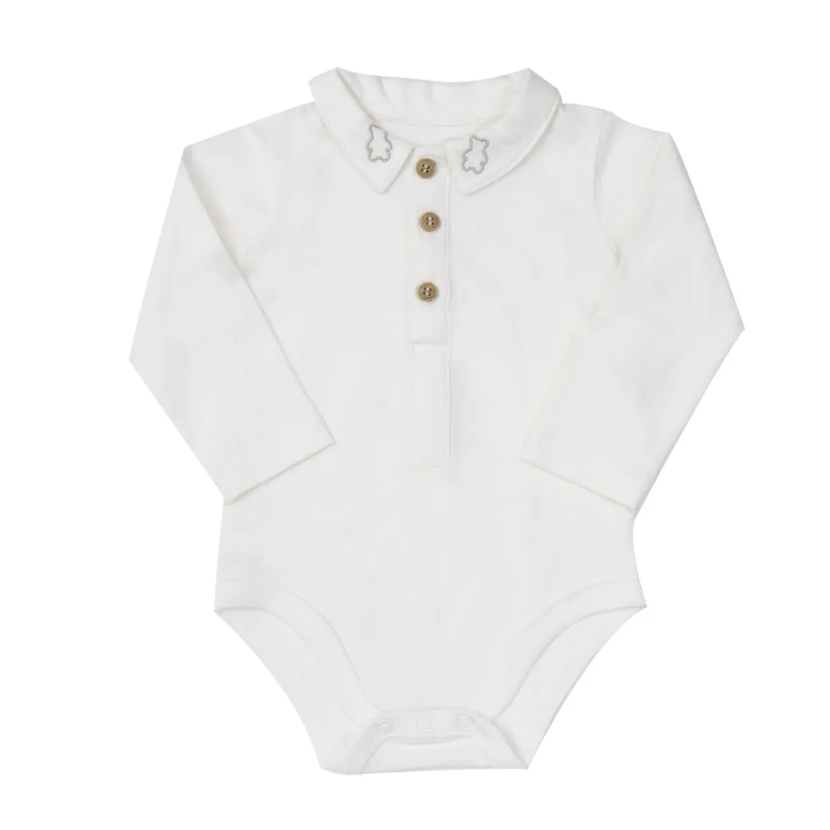 Modaiolo body con colletto effetto finta camicia e ricamo sul collo in un confortevole jersey stretch. Il capo presenta una comoda apertura con bottoncini snap sul davanti e sul cavallo. Perfetto per tutti i giorni ma anche per le occasioni più eleganti.
